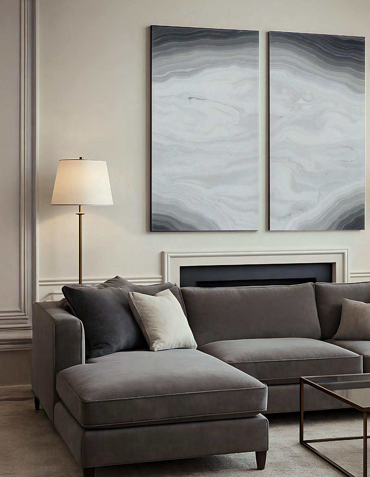 Finishes & Materials: – Glass finish: ART Amalfi Gray