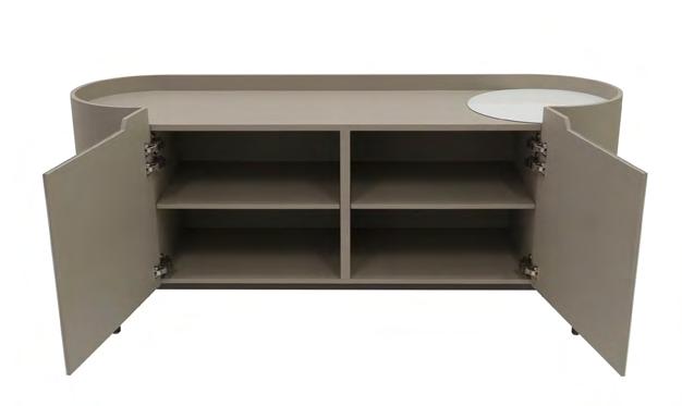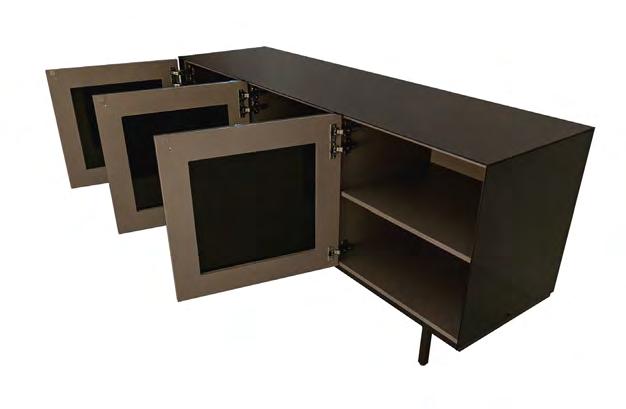 4mm extraclear tempered glass. Doors with soft close system (3 way adjustable hinges) Wood finish in lacquered natural oak or walnut veneer. Rondell Base. Metal Legs with adjustable levelers.