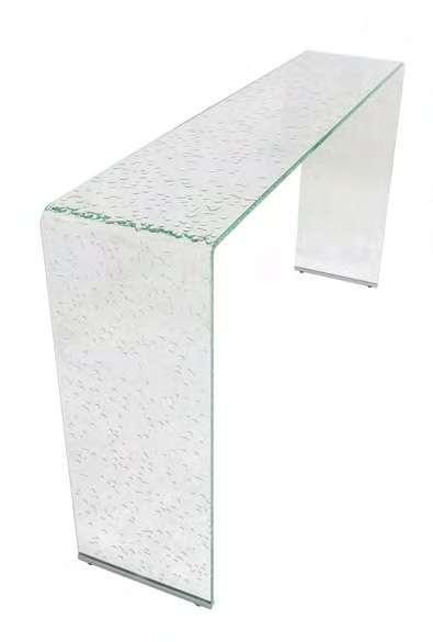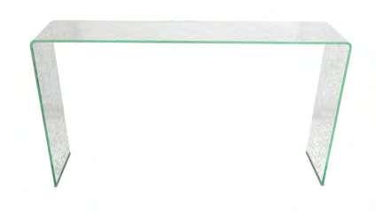 12mm extraclear bent glass. Anodized Aluminium support rails for bottom glass edge with plastic bumpers.