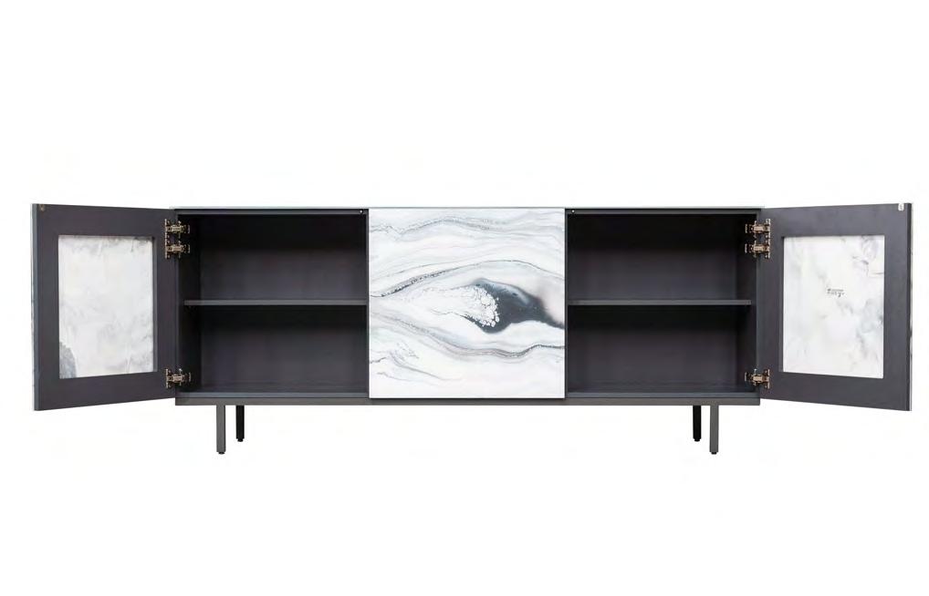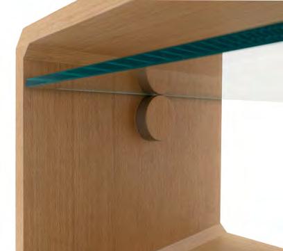 4mm extraclear tempered glass. Doors with soft close system (3 way adjustable hinges) Wood finish in lacquered natural oak or walnut veneer. Metal Legs with adjustable levelers.