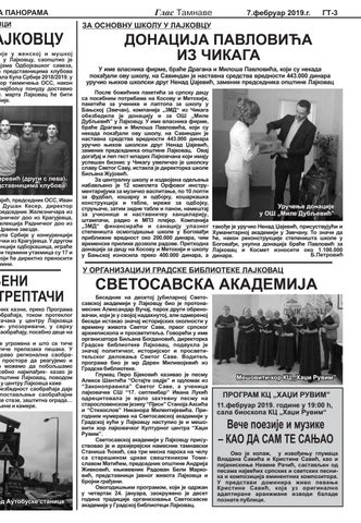 СВЕТОСАВСКА АКАДЕМИЈА Беседник на десетој јубиларној Светосавској академији у Лајковцу био је протонамесник Александар Вучај, парох други обреновачки, који је у својој надахнутој, али одмереној беседи истакао значај историјских околности у времену живота Светог Саве, првог српског архиепископа и просветитеља. Говорећи у име организатора Биљана Богдановић, директорка Градске библиотеке Лајковац, подвукла је значај политичког, историјског и просветитељског деловања Светог Саве. Водитељ програма био је мр Дарен Миливојевић из Градске библиотеке. Глумац Перо Бјековић казивао је песму Алексе Шантића “Остајте овдје” и одломак из “Законоправила” Светог Саве, а ученица лајковачке СШ “17. септембар” Ивана Лукић одрецитовала је врло захтевну песму на старословенском језику “Пјесн” Станоја Аксића и “Стихослов” Никанора Милентијевића. Пригодним нумерама на Светосавској академији у Градској кући у Лајковцу наступио је и мешовити хор лајковачког Културног центра “Хаџи Рувим”. Светосавској академији у Лајковцу присуствовао је и aрхијерејски намесник тамнавски Станиша Ђокић, сва три месна пароха на челу са старешином цркве свештеником Томиславом Матићем, председник општине Андрија Живковић, књижевник Радован Бели Марковић, представници јавног живота Лајковца и бројни грађани. Овогодишњим програмом, који је одржан у четвртак 24. јануара, заокружено је десет година традиције организовања Светосавске академије у Градској библиотеци Лајковац.