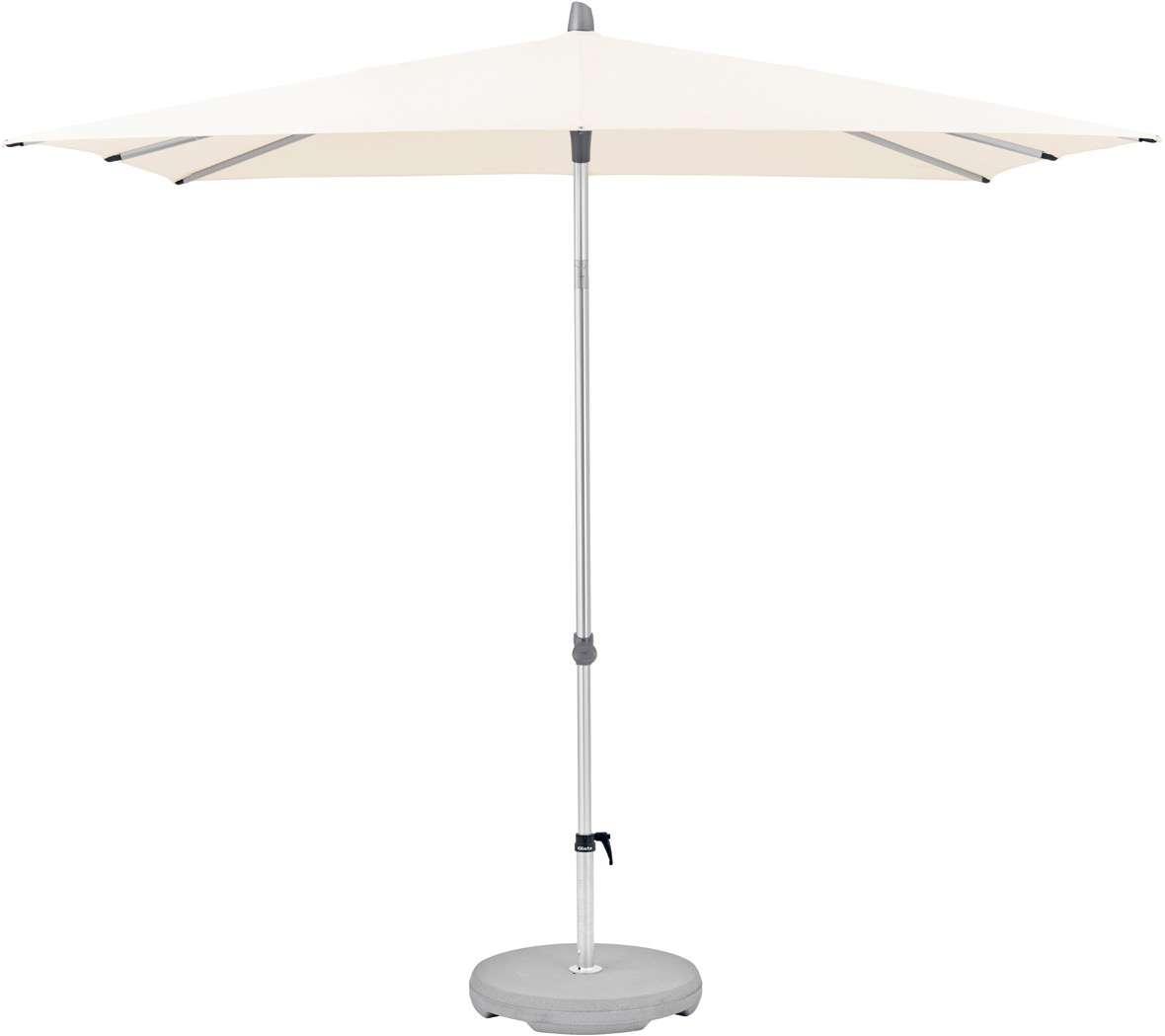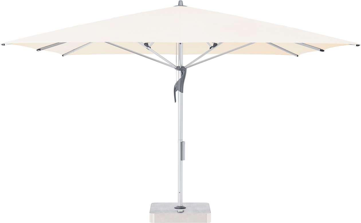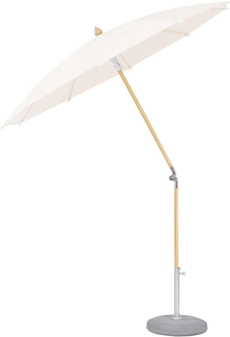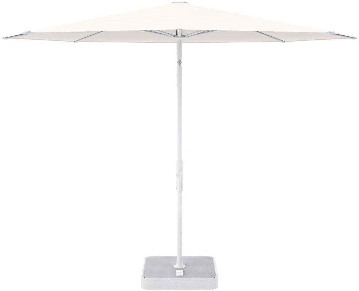 Das weiss und anthrazit pulverbeschichtete Aluminium des Gestells und der Streben sorgt mit dem flachen Schirmdach für die moderne, schwebende Optik. Der hochwertige Schirmstoff ist dank flexibler Enden selbstspannend. Für den Stock mit innenliegendem Standrohr ist ein Unterstock erhältlich, mit dem sich die Schirmhöhe anpassen lässt und so stets einen optimalen Schattenwurf garantiert. Typisch Schweizer Präzision.