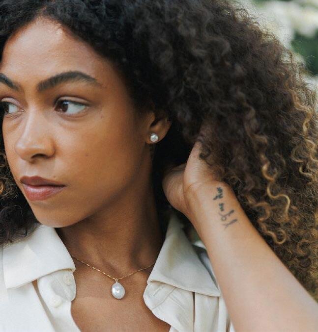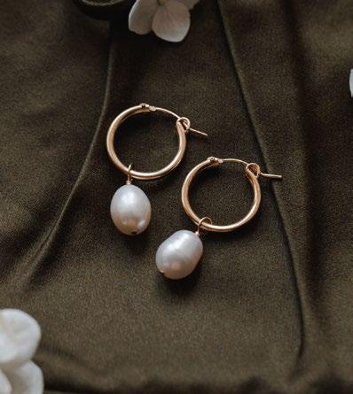 14k Gold Fill Kana Earrings, $68. 14k Solid Gold Organic Pearl Necklace, $166.