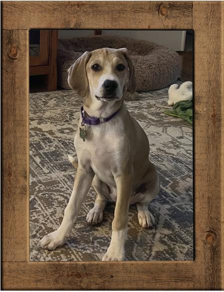 en there’s Mabel, our eight-month-old whirlwind of curiosity. A true mix of “57 varieties” Mabel is still guring out how to coordinate her too-long legs. She is a dog in constant motion, chasing leaves, her own tail, and anything else that dares to move. Every corner of the world is a new discovery for her. Her energy is boundless, much to the dismay of Chuck, who would prefer not to be in her path of destruction.