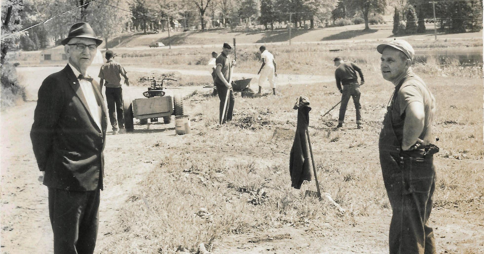 Among the first volunteers to heed Barnes’ call were members of Albion’s Boy Scout Troop 128. Barnes, who also was a Gleaner agent and District Manager, sponsored the group and it was known as the Gleaner Boy Scout Troop. “I was in his Boy Scout troop sponsored by the Gleaners in the 1960s, and he often mentioned the Gleaners,” said Albion historian Frank Passic Jr. Barnes and his scouts had begun their environmental work on the south edge of the city, just down the street from Barnes’ home on Adams Street. They cleaned up a riverside area along Water Street that had become a dump for construction debris, old sidewalk concrete, and dead willow trees, and turned it into a small park.