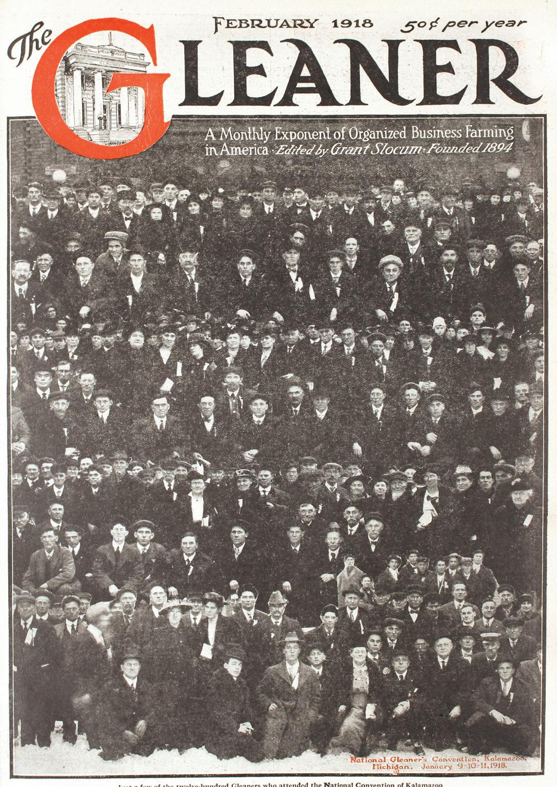 After moving to Detroit, The Gleaner became one of the most successful and politically infl uential farm papers in the Midwest. In December 1904, the Country Visitor was purchased and in 1905 The Farmers Friend, both rival publications. Their subscription lists expanded coverage outside the Society’s membership for the fi rst time. Although still the offi cial voice of the Ancient Order of Gleaners, the paper was designed to appeal to the general farm population. An aggressive advertising department was formed, and before long The Gleaner became a major advertiser of farm products. By December 1905, the paper doubled in size again to 32 pages and was copyrighted in 1907.