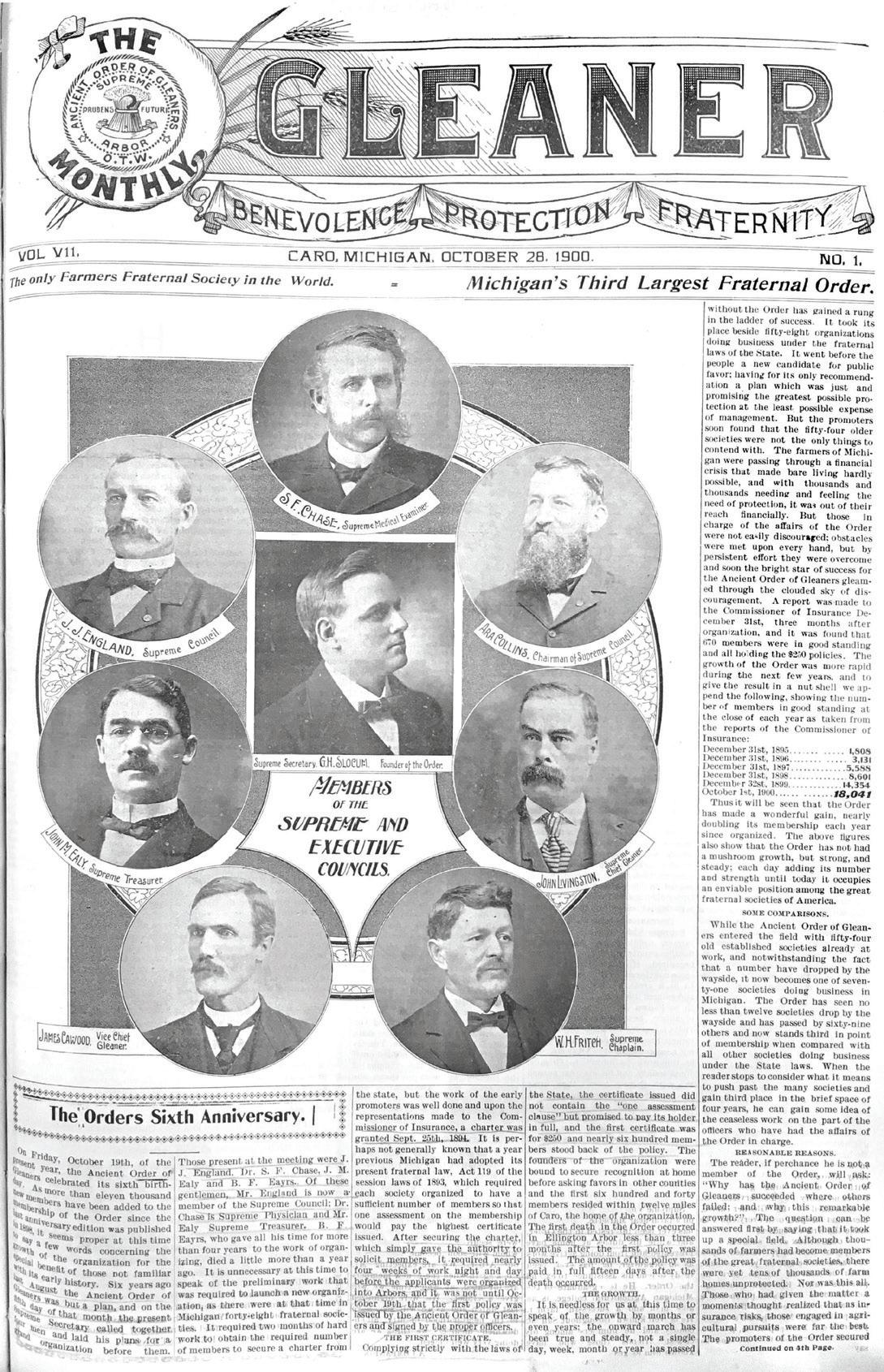 The October 1900 cover of The Monthly Gleaner celebrated the Society’s sixth anniversary.