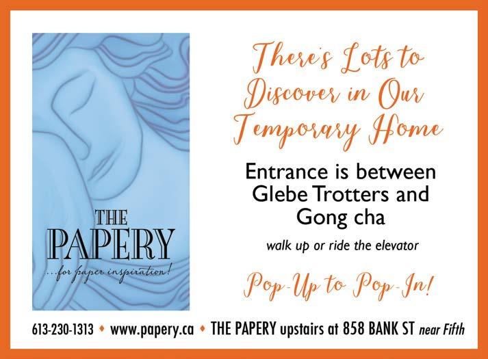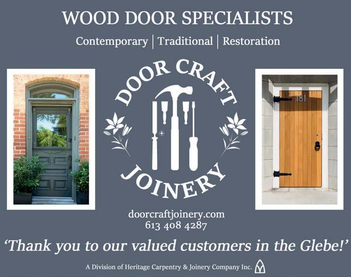 Third Son Tailor is now open at 796 Bank Street. “Ottawa’s bespoke tailor shop . . . Semi-bespoke, madeto-measure, ready-to-wear, alterations.” Custom, weddings, alterations, interiors (upholstery). 613-234-8484. glebe@3rdson.ca.