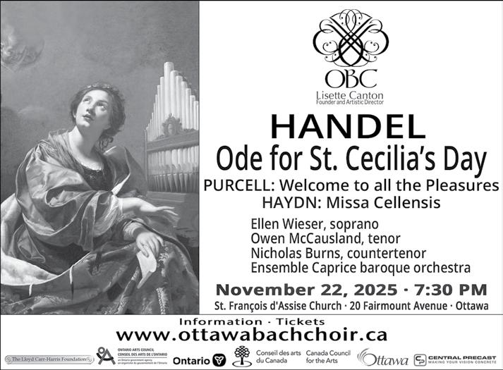 RIDEAU CHORALE Rideau Chorale will perform Messiah on Sat Dec 13 at 7:30 p m in Southminster United Church Doors open at 7pm Tickets are available at www zeffy com/ en-CA/ticketing/rideau-chorale-messiah