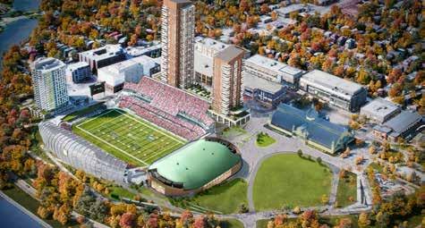 The broad strokes of the Lansdowne 2.0 plan remain the same: demolish the existing TD Place and attached retail stores and replace them with a smaller arena, build new northside stands with fewer seats and no roof, and construct a new retail block topped by two highrise (40-storey) residential towers. The current green space at Lansdowne is to be significantly reduced since the arena will be built there.