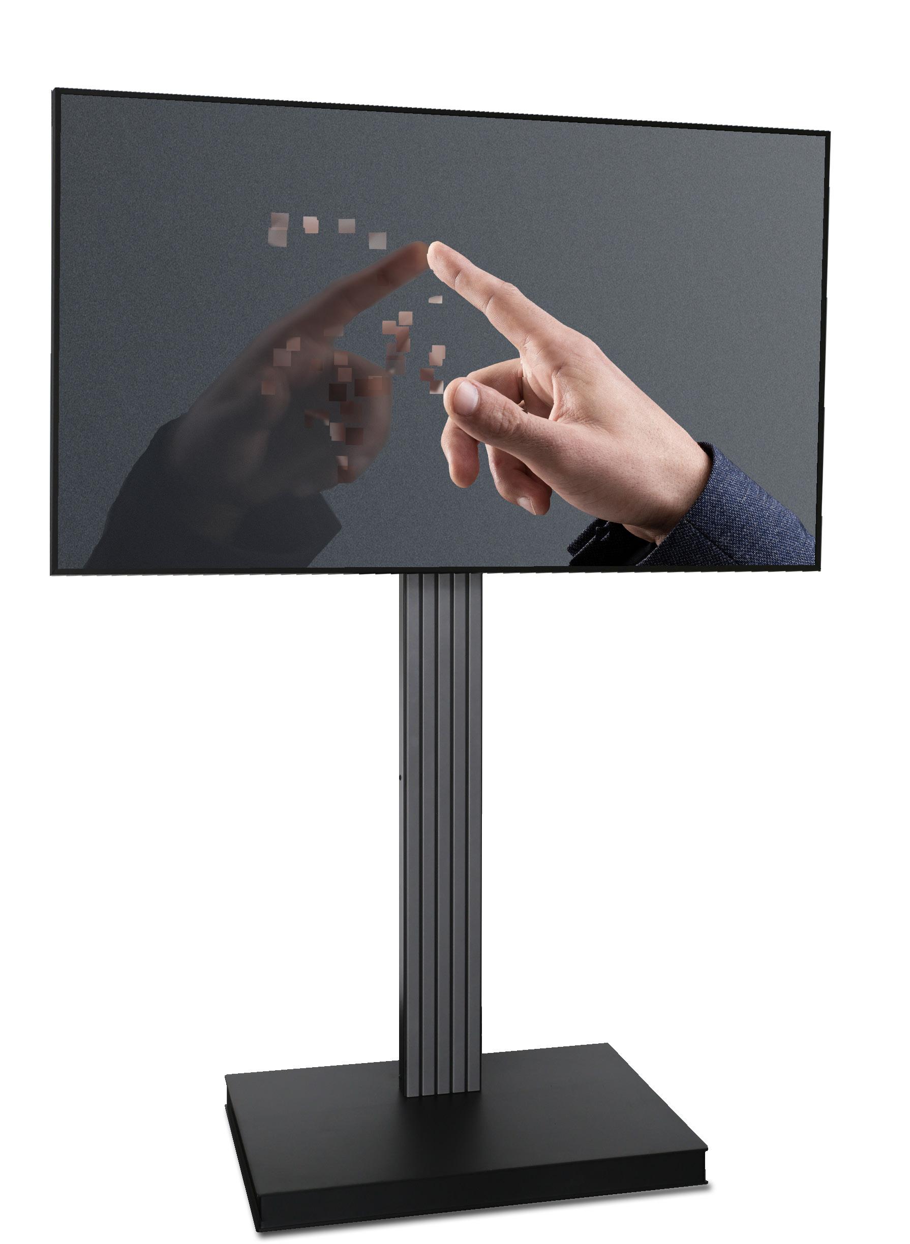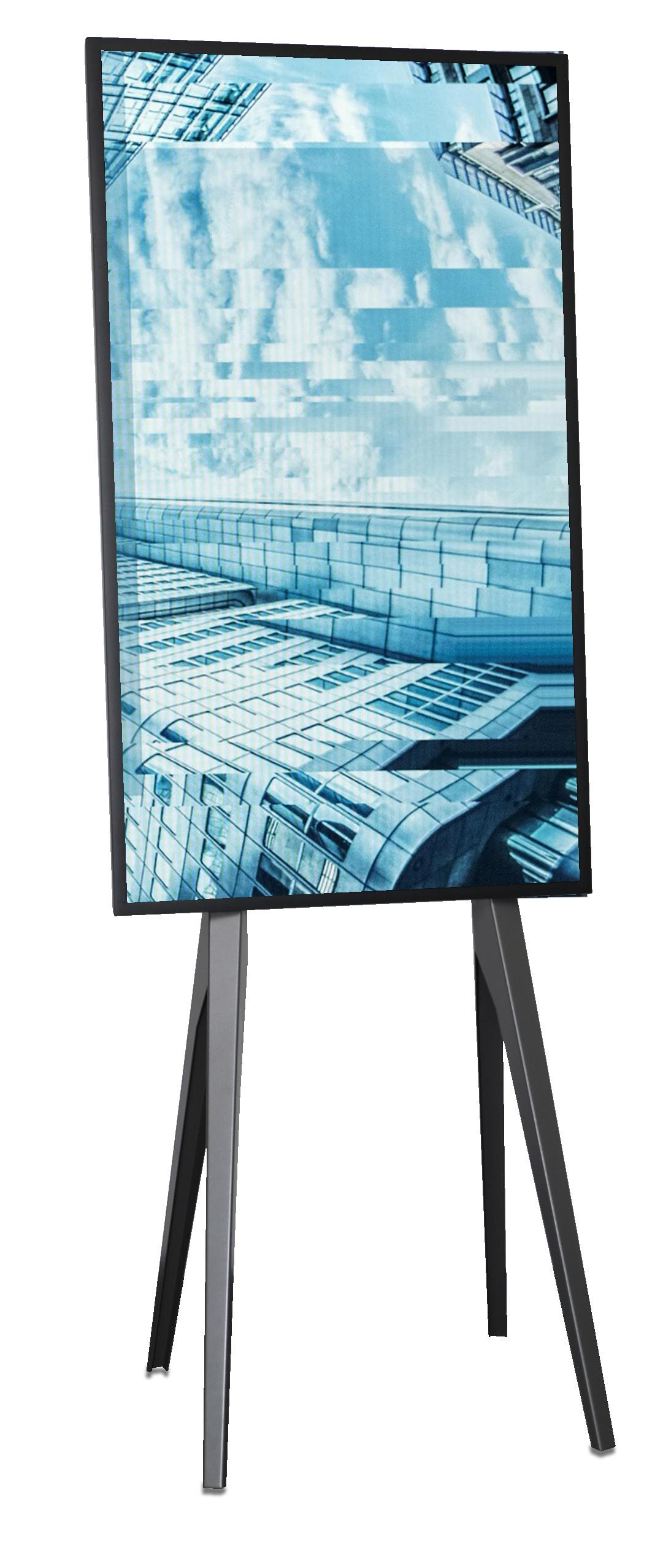 Statement Standfuß - ein absolutes Highlight ist unser neuer Statement Standfuß. Mit diesem formschönen Standfuß können Sie Displays in verschiedenen Größen anbringen und dies auch als Videokonferenzmöglichkeit nutzen mit unseren Halterung für Kamera-/Soundbar oberhalb-/ oder unterhalb ihres Displays. Dieser Standfuß ist schlicht, platzsparend und einfach ein Blickfang! Abb. 55“