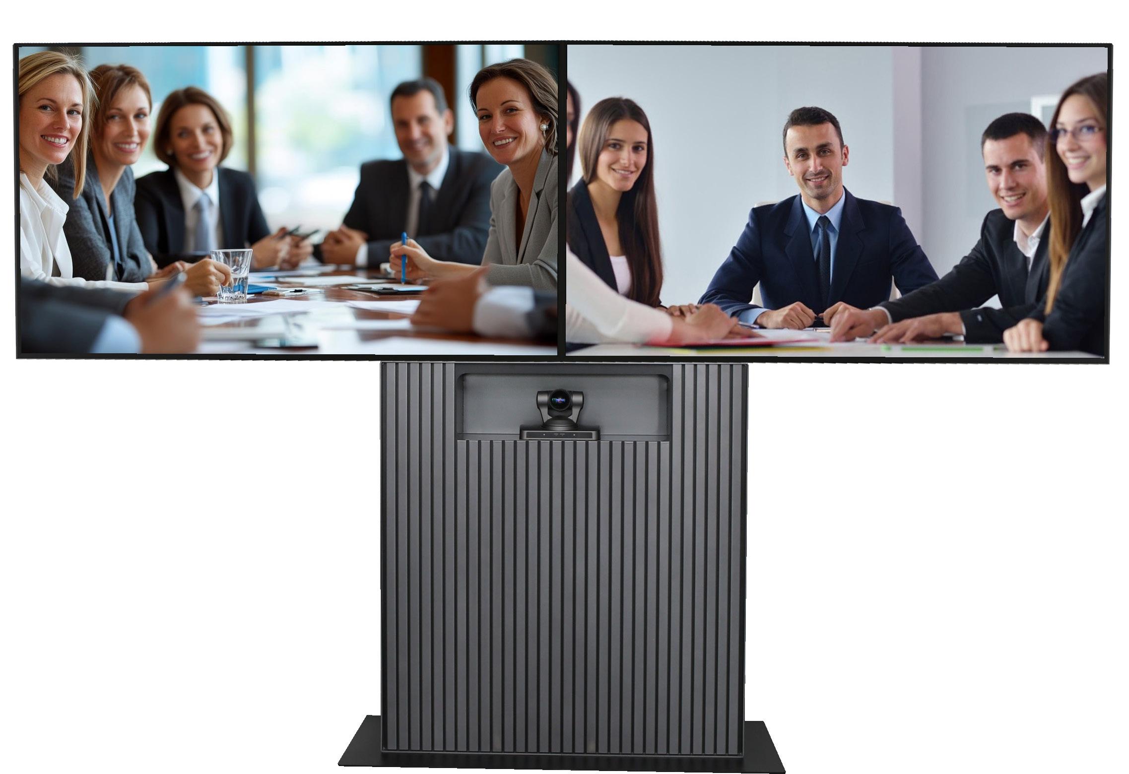 Statement Zubehör - unser Statement Standfuß ist auch für Konferenzräume perfekt geeignet! Mit einer Kamera-/Soundbarhalterung ober- oder unterhalb Ihres Displays, lassen sich Meetings schnell und einfach abhalten!