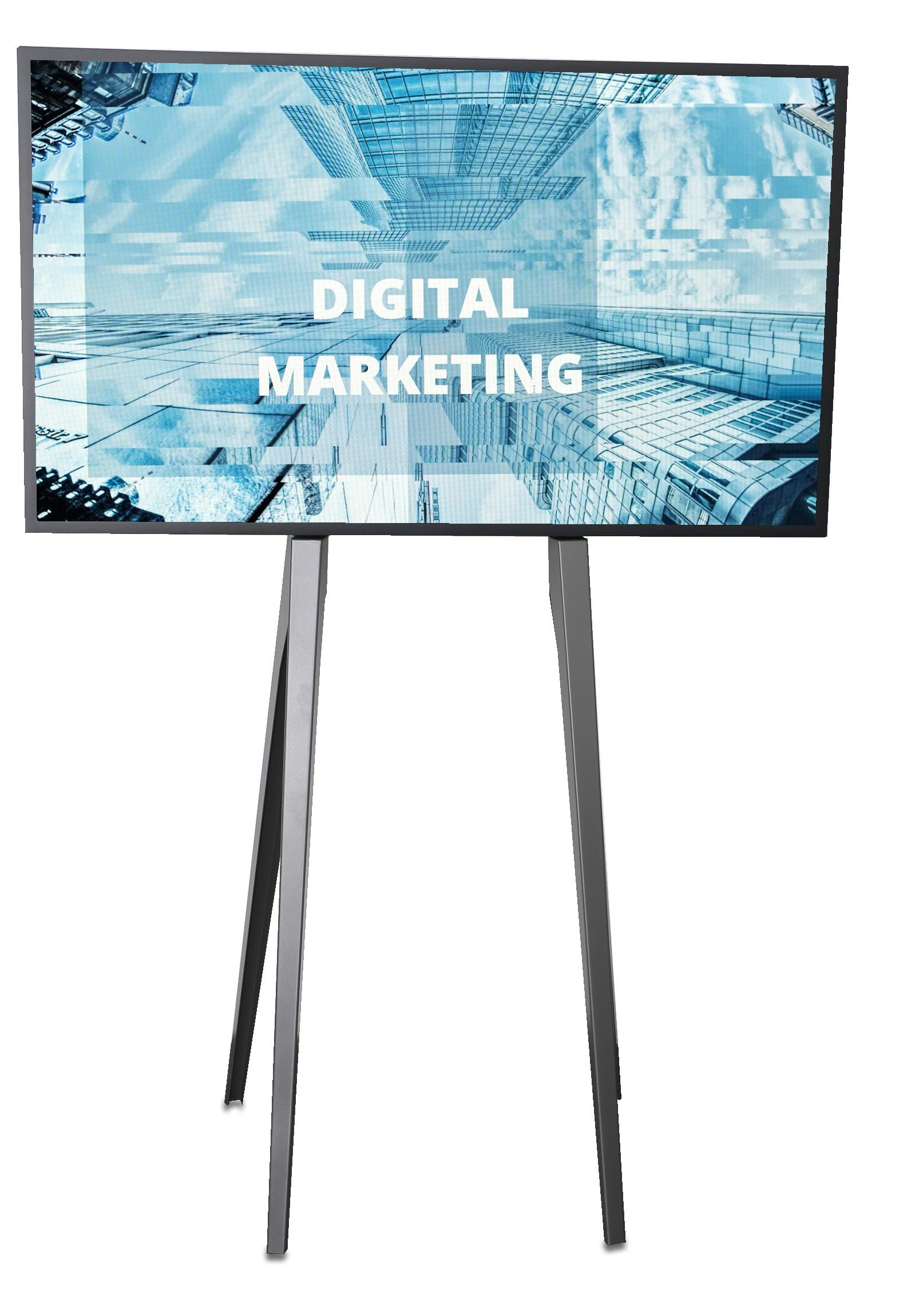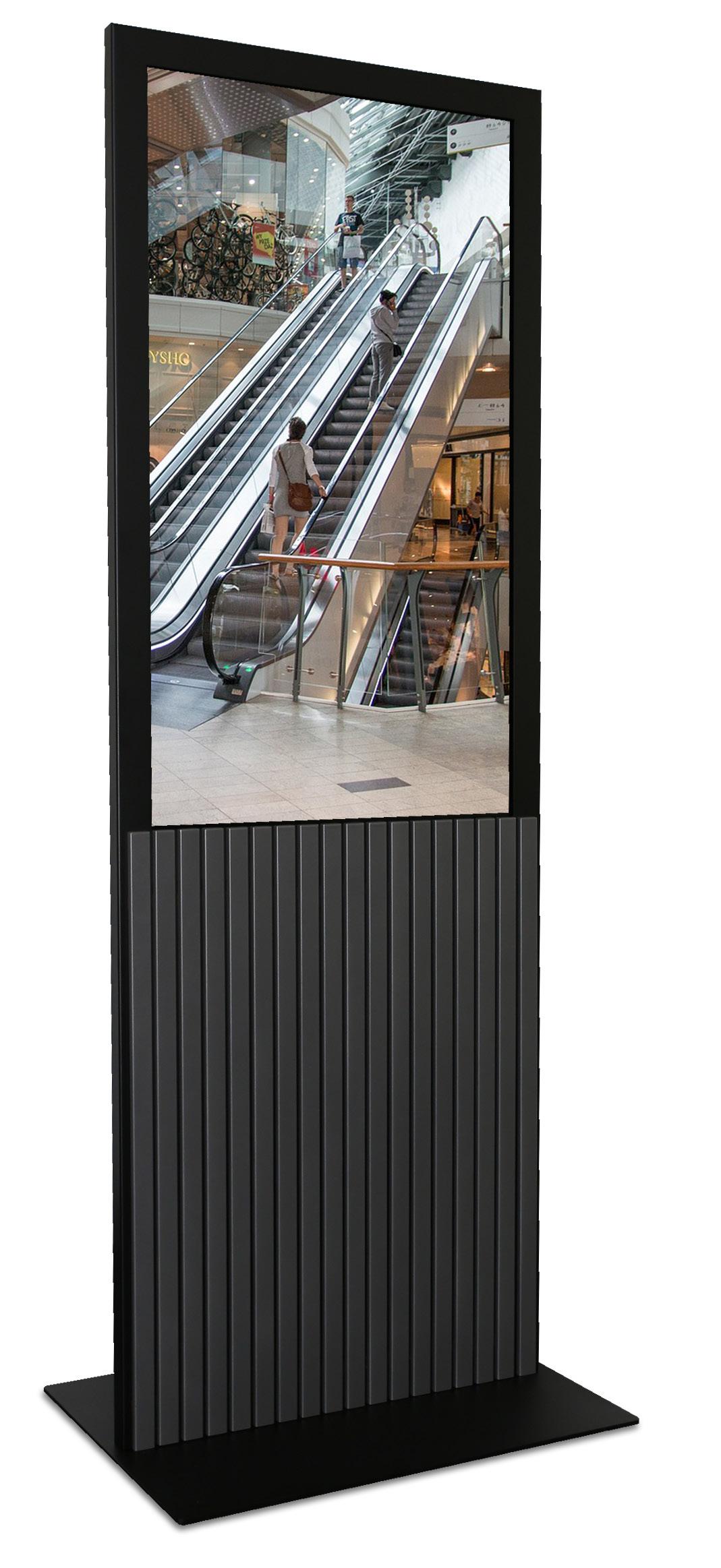 ModernView Stele - die sehr schlanke Stele rückt durch ihr zurückhaltendes Design Ihren Content auffällig in den Vordergrund. Die leichte aber sehr stabile Bauform besteht aus pulverbeschichtetem Stahlblech und ist für eine freistehende Lösung geeignet und wird spezifisch für Ihr Display angefertigt.