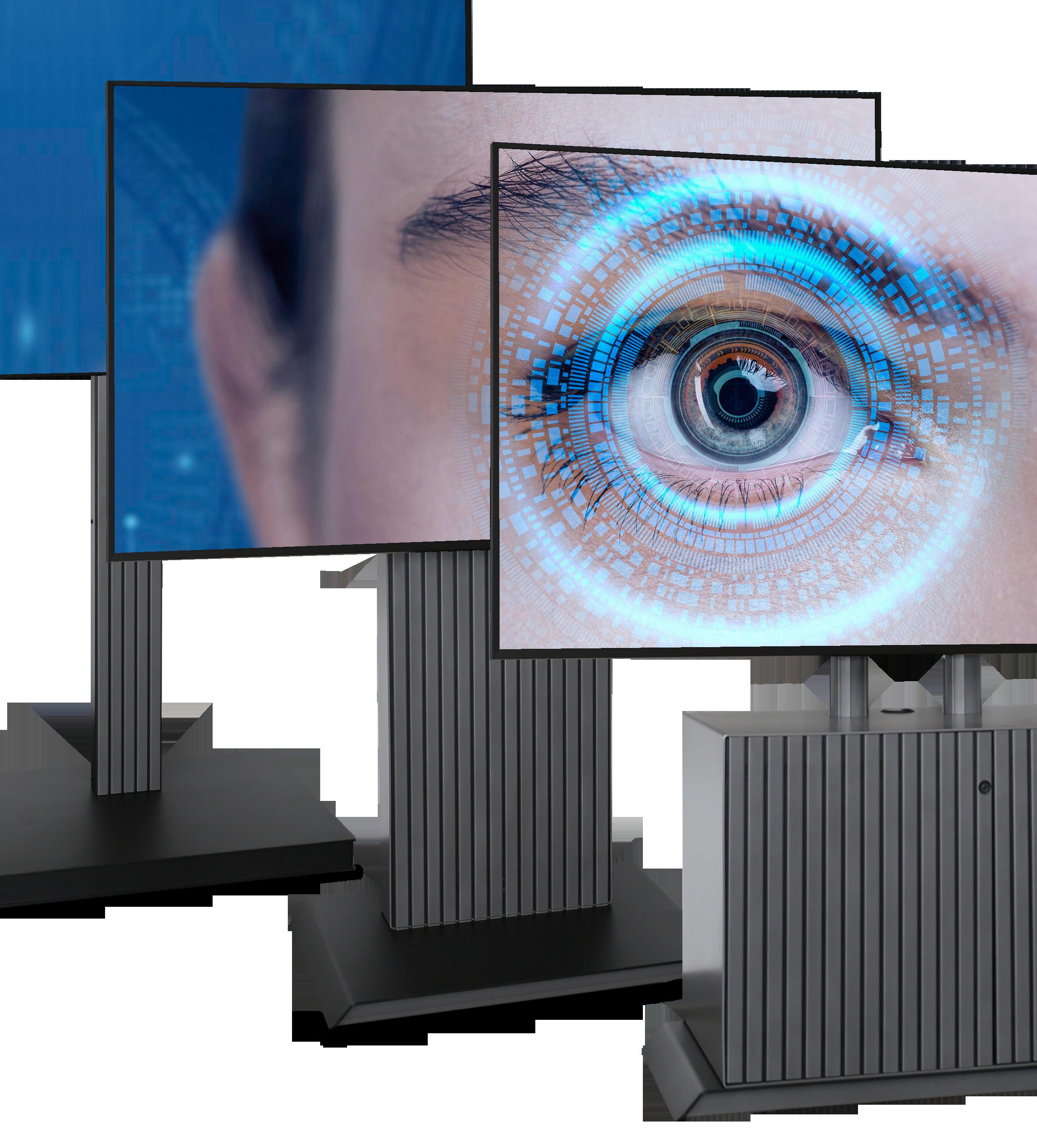 Wand-/Standsäule XL für 2x 85“ Displays oder 1x 110“ Display - die große Wandsäule mit universeller Displayhalterung kann bis zu 2x 85“ Displays oder 1x 110“ Display aufnehmen. Im Inneren der Säule befindet sich ausreichend Platz für Zuspielgeräte inkl. 19“ Aufnahmeracks. Die Kabelführung ist innenliegend. Die Front ist abnehmbar und unterhalb der Displays befindet sich ein Fach für eine Kamera-/Soundbar. Alternativ auch als freistehende Lösung erhältlich.