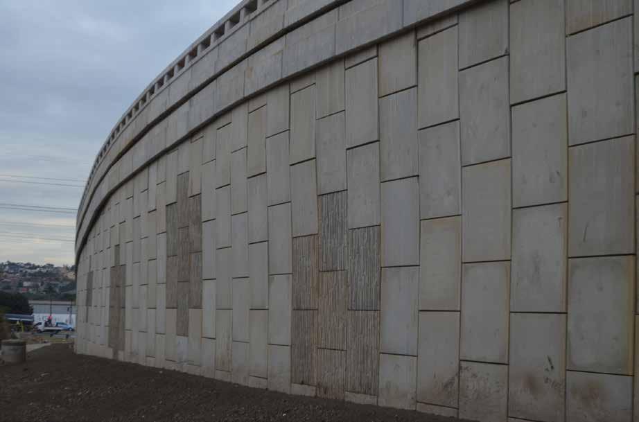 “The foundation piles comprised largediameter, temporarily cased augered piles, which were socketed into hard rock,” explains Daryn Cloete, contracts engineer, Keller. The excavation consisted of loose sandy soils, stiff clays and hard rock material. In total, some 66 000 m³ of material was removed to spoil sites. Concrete obstructions and old foundation footings, as well as the relocation of services, presented major challenges and the resequencing of the works. This included the building of a cable tray capping beam on top of the lateral support piles to house the relocated services.