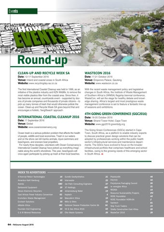Date: 17-21 October 2016 Venue: Emperors Palace, Gauteng Website: www.wastecon.co.za