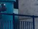 For safety reasons, trenches have been barricaded. A moil from an air compressor is driven into clay with an 8 lbs hammer, then removed, and a wooden stake is placed into the hole along with highvisibility netting.