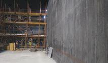 After the grout was cured to a strength of 80 MPa, the cables were stressed to 75% via six precast concrete buttress panels spaced along the perimeter of the reservoir.