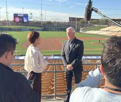 City Manager Kevin Phelps, pictured on the left, scored home runs with his interviews with Hodo Station of TV Asahi, a major broadcaster based in Tokyo, and on 3-TV / CBS-5, talking about how spring training is a huge win for the city economically.