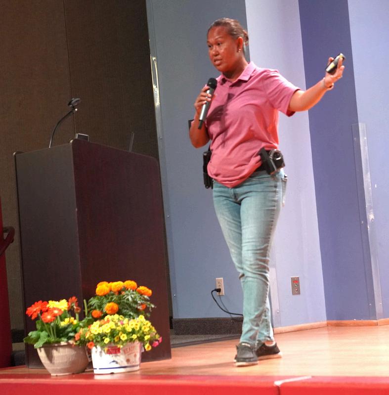 Community Services partnered with our Office of Economic Development for the audio/visual team, while the Main Library’s youth librarian staff members hosted the game/craft area. Our Parks and Recreation Department provided its popcorn machine and staffed a table with their program information. COG Police Department also had a presence at the event and Police Detective Yon Grant, pictured on the top left, spoke to the audience. Detective Grant said the police department helps in any way possible to locate missing residents who have dementia or other mental challenges, regardless of how long they have been gone.