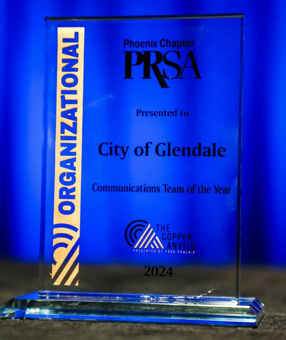 Congratulations to Glendale’s Communications team for its 2024 Communications Team of the Year win at the prestigious Public Relations Society of AmericaPhoenix (PRSA) Copper Anvil Awards.