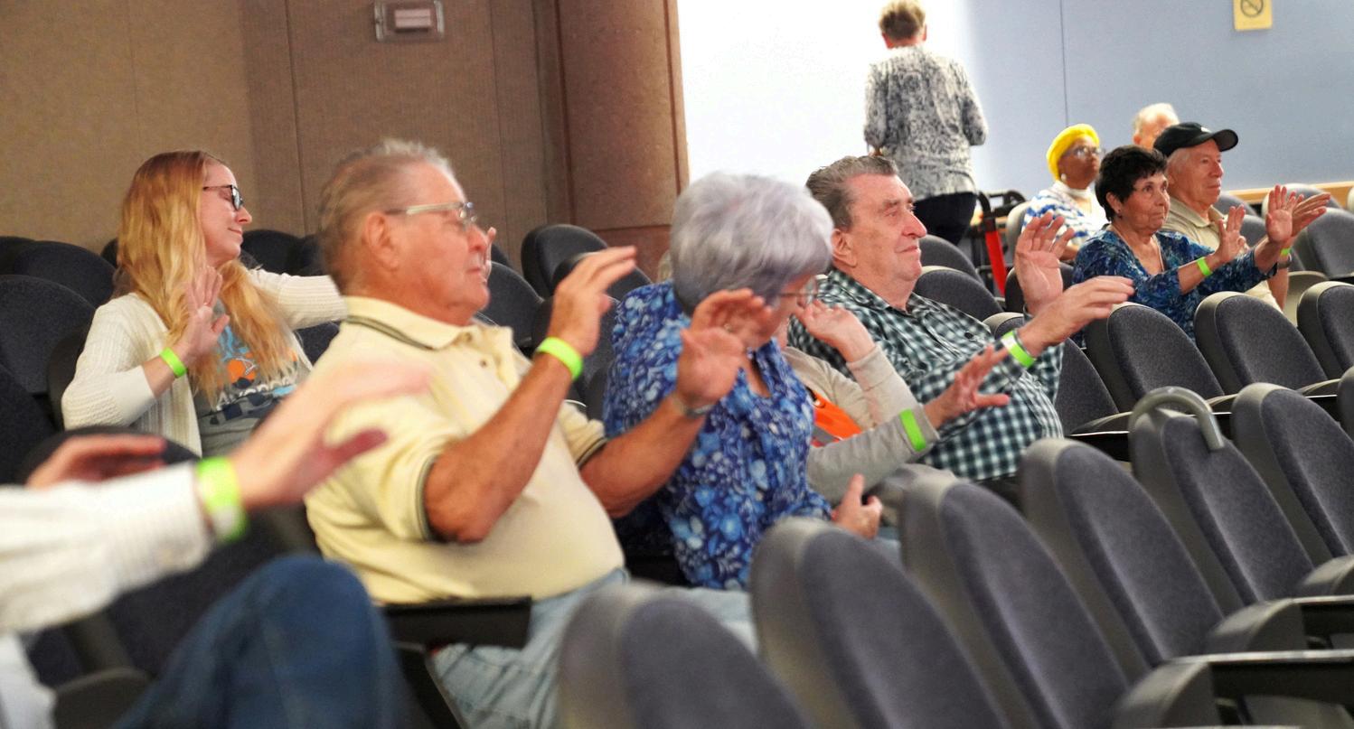 COG and the partnering organizations created an carnival-like atmosphere with prize giveaways, popcorn, crafts projects for children and books about dementia available to check out. Shannon Wallace, CEO/founder of Musical Memory Care, pictured on the top right, led attendees in singing the song “Chantilly Lace” while doing hand and leg movements aimed at boosting health.