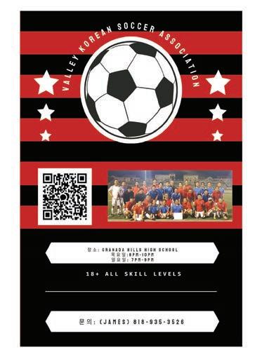 건강한 몸, 긍정적인 에너지, 그리고 평생 이어질 수 있는 인연까지 축 구 동호회 활동은 단순한 운동을 넘어 삶의 질을 높이는 소중한 시간이 된다. 참여 및 문의: James 818-935-3526