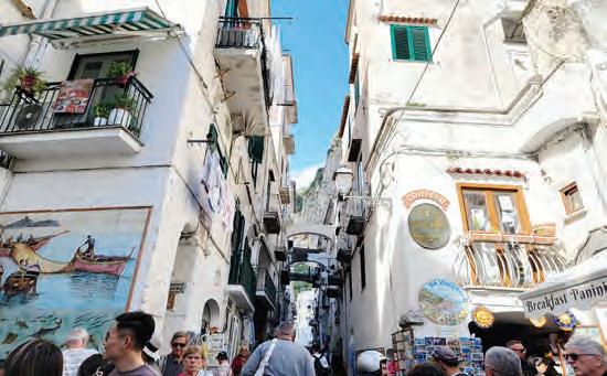 ๊ฑด๋ฌผ๋ค์ด ์ธต์ธต์ด ์ด์ด์ง ๋ชจ์ต, ๊ณ ํ์ค๋ฌ์ด ๊ฑฐ๋ฆฌ๋ฅผ ์ฑ์ด ์์ ๊ฐ๊ฒ๋ค, ๊ทธ๋ฆฌ๊ณ ์ค์ ๊ด