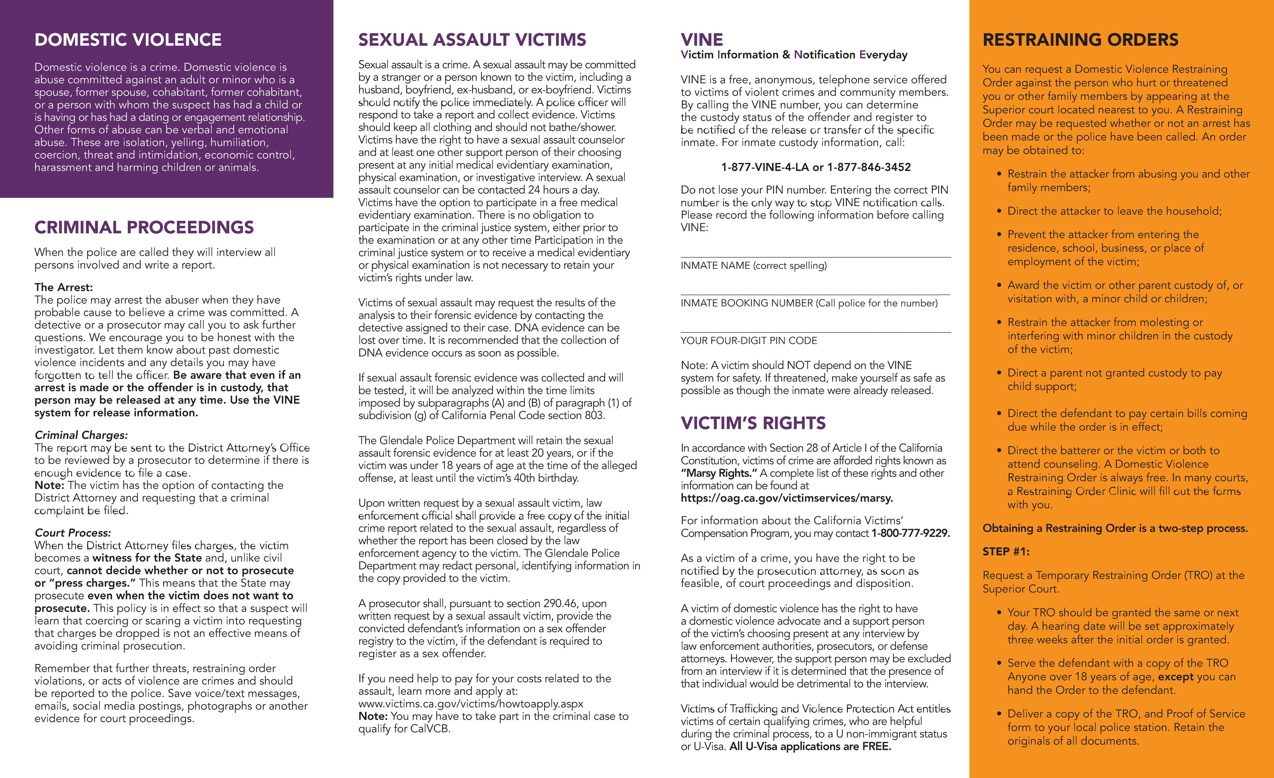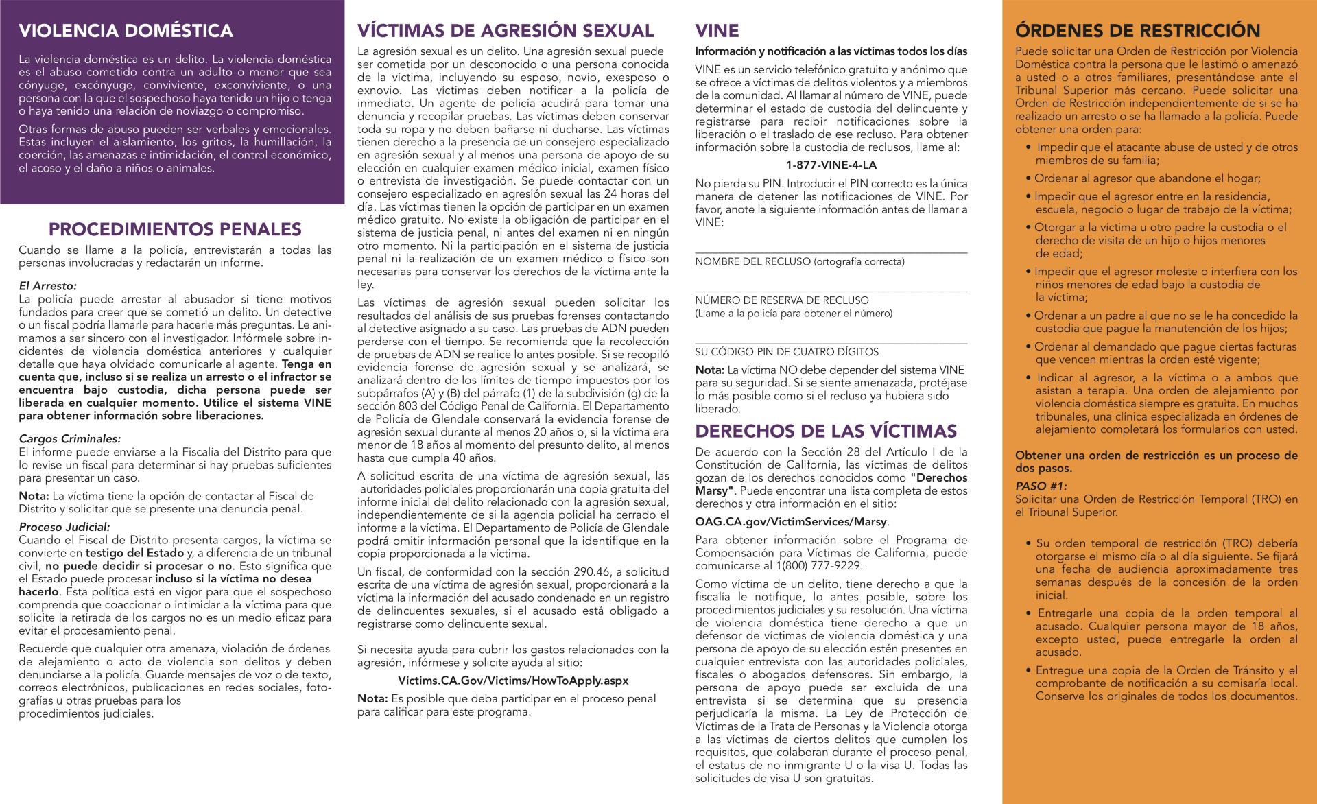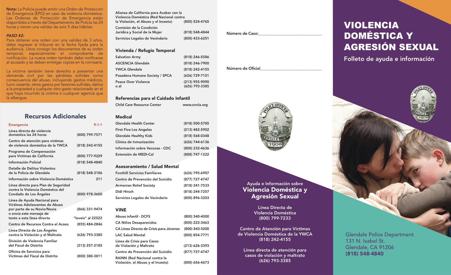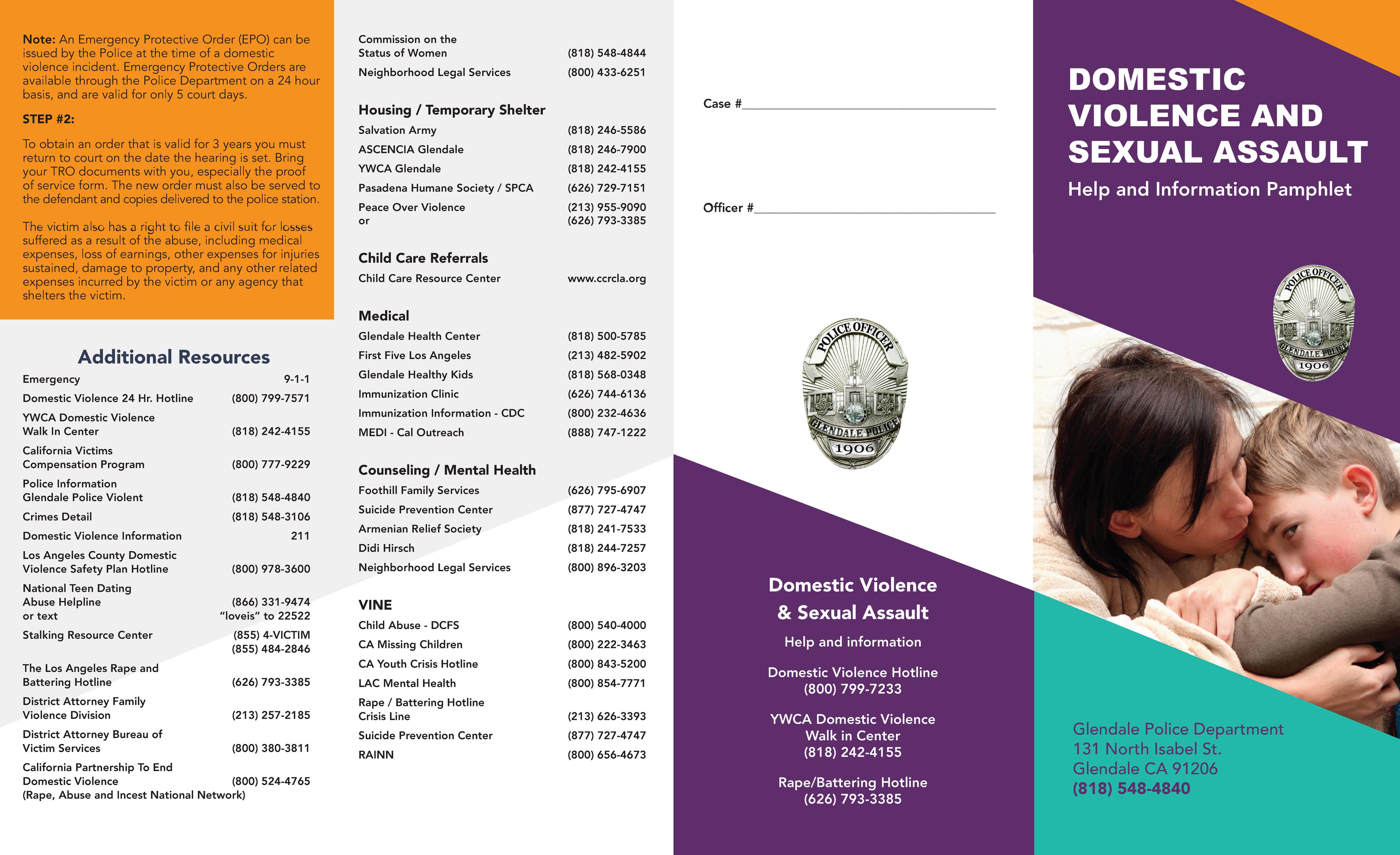 Domestic Violence and Sexual Assault Pamphlet 2025 (ENGLISH, SPANISH, ARMENIAN) by Glendale Police Department - Issuu