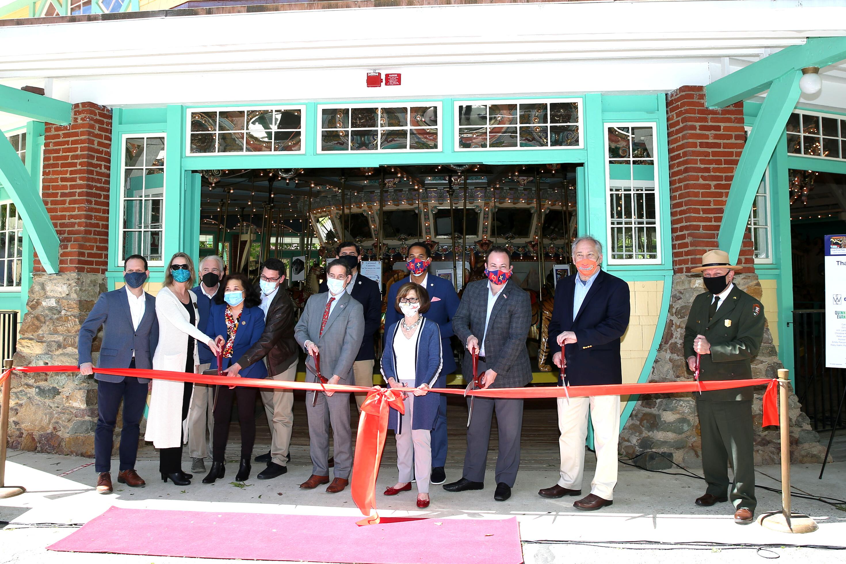 To mark the opening of Glen Echo Park’s Dentzel carousel for its 100th Anniversary season, we held a Ribbon Cutting Ceremony – live streamed from the carousel building on our website and YouTube with government officials and other dignitaries – to celebrate this local icon that has been a treasured part of the Park and the community for a century. The event included a ceremonial first ride with officials and sponsors.