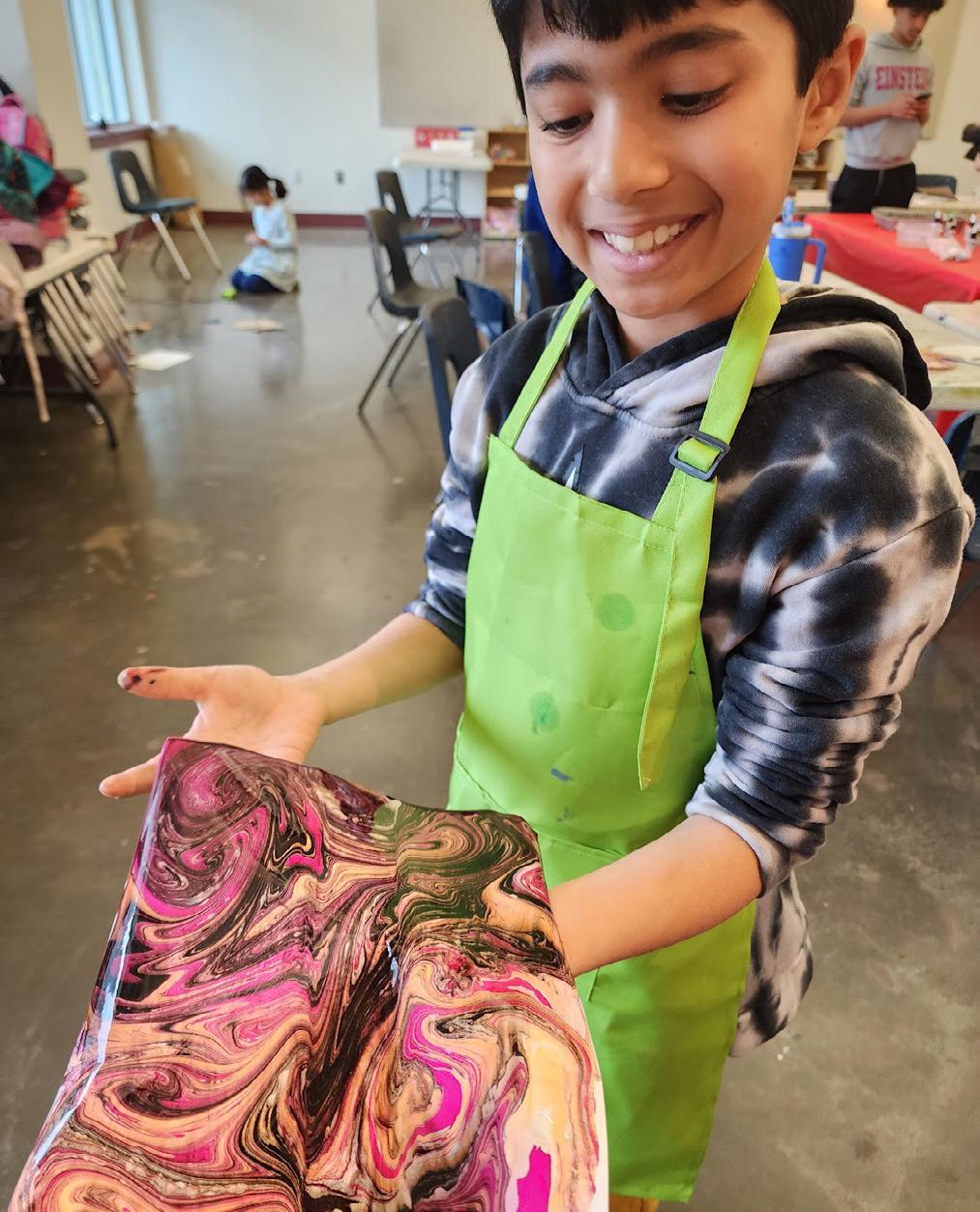 • Experiment with a Japanese paper marbling technique in a new ofering, Day Of Suminagashi Paper Marbling and Mixed Media (Ages 5-10).