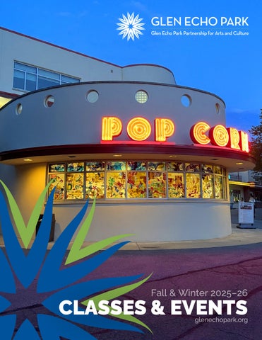 As always, thank you for your support of the Glen Echo Park Partnership for Arts and Culture, a non-proft dedicated to inspiring creativity and ofering shared artistic experiences in a historic and natural setting—a place truly unlike any other. Every donation goes a long way: glenechopark.org/donate.