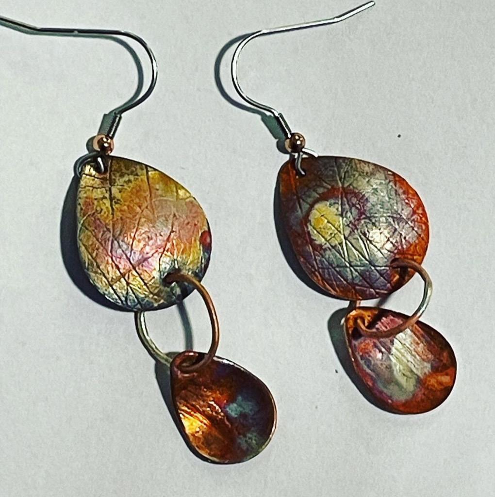 I learned silversmithing here at Glen Echo Park at the SilverWorks Gallery, started by Blair Anderson. My professional occupation is public historian, and sometimes my interest in history and art intertwine when I am creating jewelry pieces. Other times, I am fascinated by textures and the play of light on metal. During the pandemic, I re-discovered my bead collection and now sometimes incorporate semiprecious stones or Czech glass into my pieces. I focus upon earrings and necklaces, seeing where my creativity leads me. I make jewelry that a person could wear every/any/day, but each piece is far from ordinary.