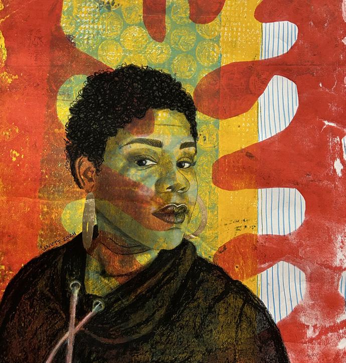 Muriel Braxton a self taught DC based artist, developed an interest in art at a very young age and spent her youth honing her artistic talents with pencil, night light and drawing on anything she could get hands on. After high school she stepped away from art to pursue a career in Accounting. In her forties she enrolled in her first and only basic drawing class. It was as if she had never taken a break. Her love of vibrant colors and people can be seen throughout her pieces. Her process is to sit with the canvas and whatever comes out is her style. She does however get the most satisfaction from her portrait pieces and experimenting with new mediums.