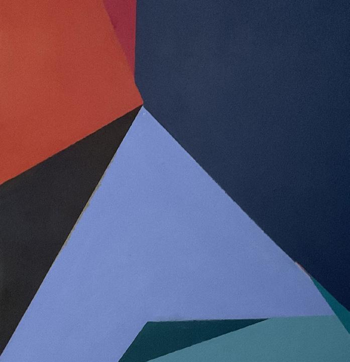 I paint because I love to mix and move color. When I was younger, I didn’t get abstract art at all. My work was representational - figures, dogs, still lifes, landscapes, and lots and lots of flowers. After completing one last very realistic still life, something in me shifted. While playing the piano one night, I envisioned a dark green color field with a red horizontal line running through it and an explosion of color at one end. After painting that vision and getting positive reviews for it, I was excited to see where the journey into abstract painting would take me. Now, I feel that making these colorful abstract canvases, inspired purely from my imagination, is what the creative process is all about.