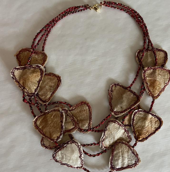 I am a fiber artist based in Brentwood, MD. I use all elements of natural fibers to create one-of-a-kind wearable art pieces. My wool roving is locally sourced from farms in Virginia and Maryland, yarns are hand spun, and silk roving and yarns are hand dyed using natural plants and minerals. I wet felt using traditional techniques and weave free form. I am continually inspired by the traditional hand crafts of my ancestors and seek to honor them through my work