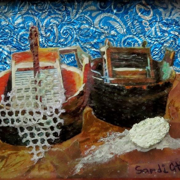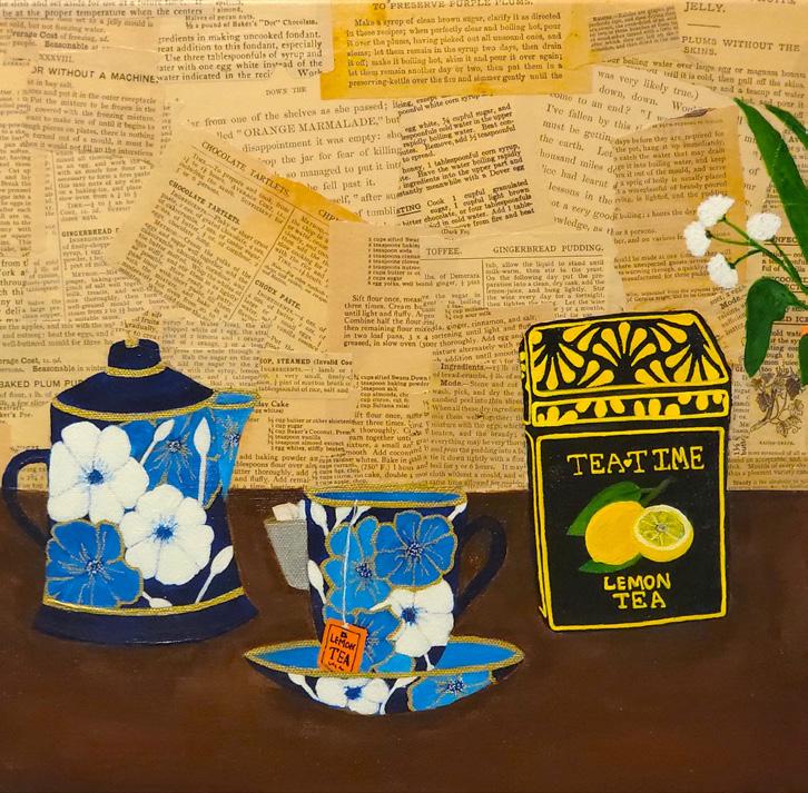 I began painting later in life; and it has been such a joy. There isn’t a medium that I haven’t explored. I began with traditional watercolor and expanded to oil and acrylic painting, culminating in my creating multi-media pieces using batik, collage, and printmaking. I love adding abstract textural elements to my work. I have been fortunate to win some awards in local art shows. In all my work, I focus on presenting a moment in time; art that allows the viewer to imagine a story about each piece.