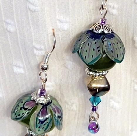 I enjoy using different surfaces, techniques, and paints to create my jewelry designs. Although my main media is watercolor, I have a playful style that incorporates whatever tool helps create the vision in my mind. In my Magic Garden Series I design, hand decorate and hand form special bead caps to add a totally unique element to my jewelry. Each piece of Garden Magic Jewelry is lovingly designed with handmade beads as well as upcycled beads and found treasures. In my Colorscapes series, I paint with wild abandon and then come back to each piece with additional careful decorations and bits of treasure. Again, all pieces are totally unique designs, no two are alike. My aim is that my jewelry elicits joy, promotes a sense of adventure and happy surprise. My motto is: “Life is too short not to have fun jewelry.”