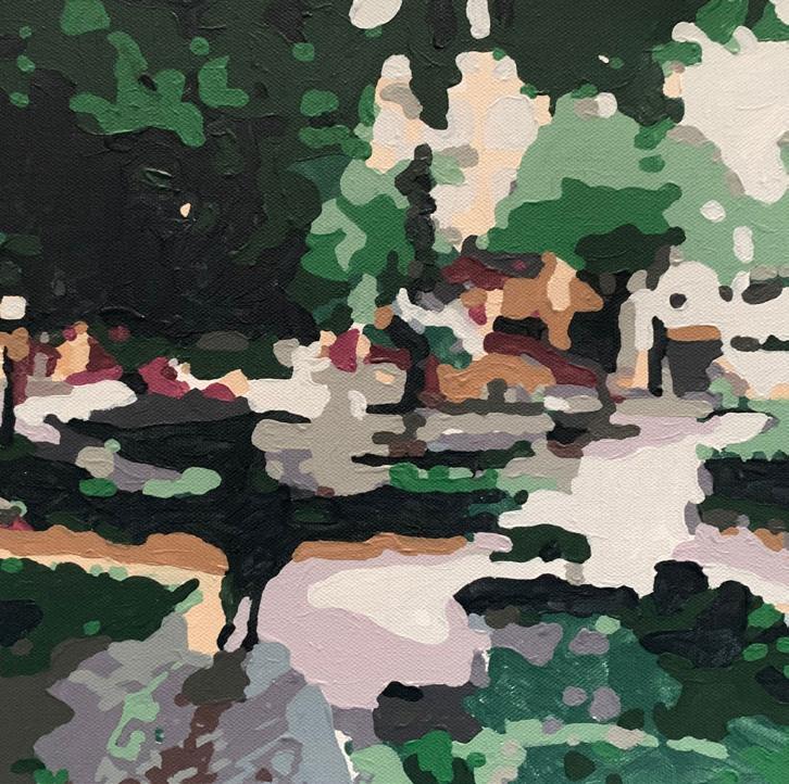 My work depicts the urban environment and involves the effect of memory, nightfall, and architecture on the viewer. I am looking for a sense of calmness and in capturing the sensation of viewing a space as a long pause. My artwork depicts specific places at specific times. These are not random areas, but places that I inhabit, revisit, and respond to on a personal level.
