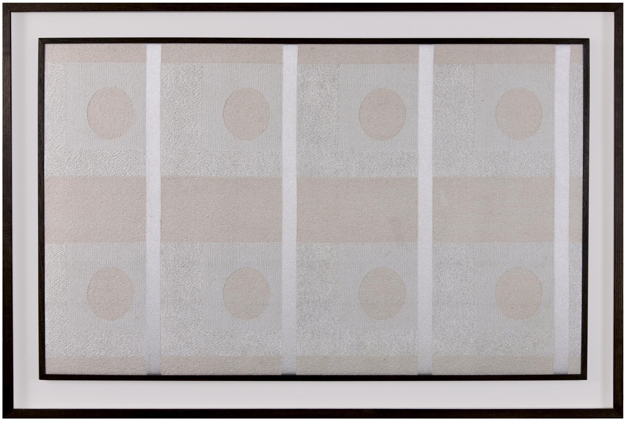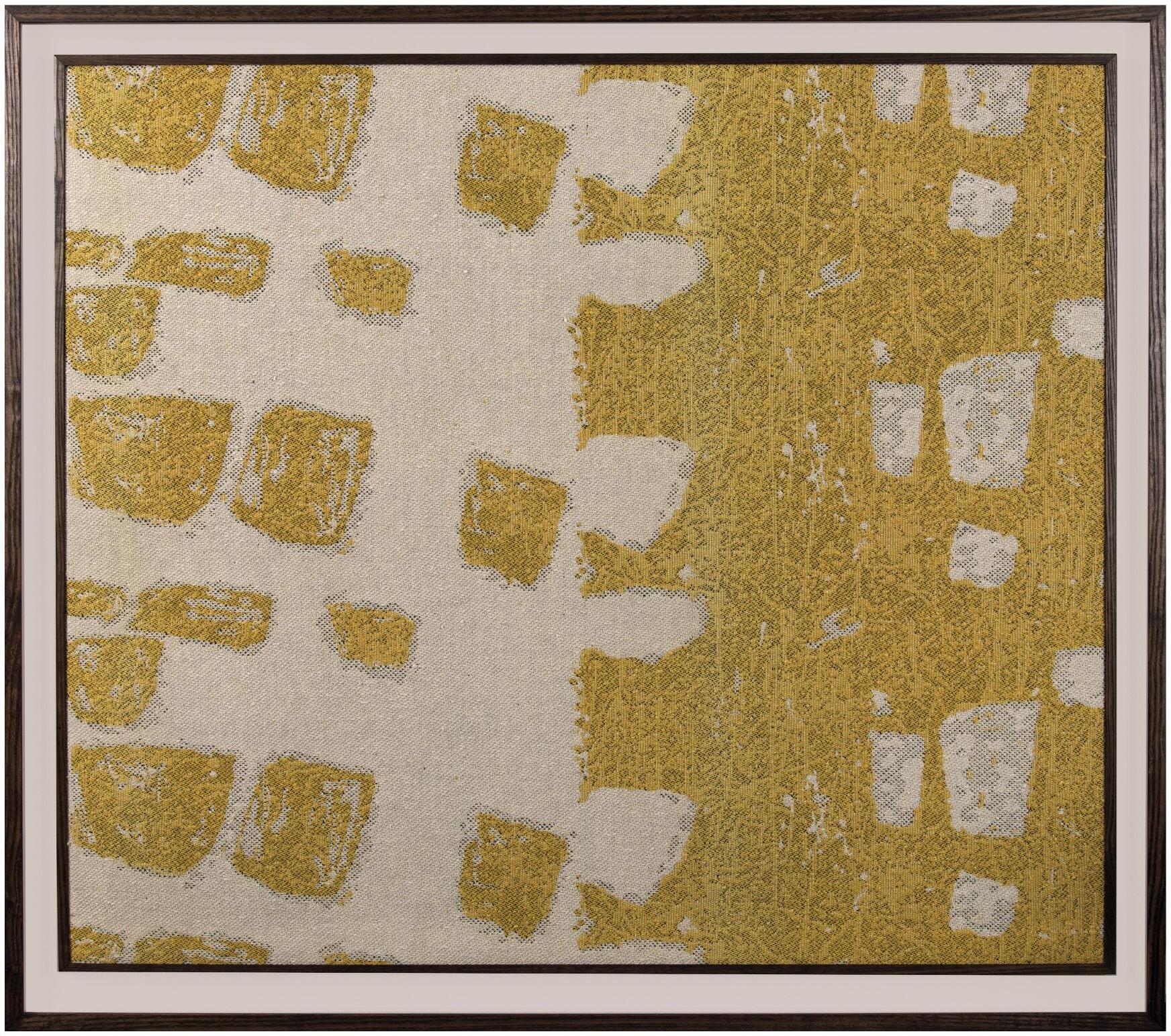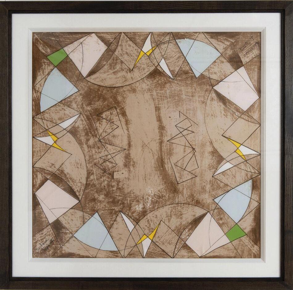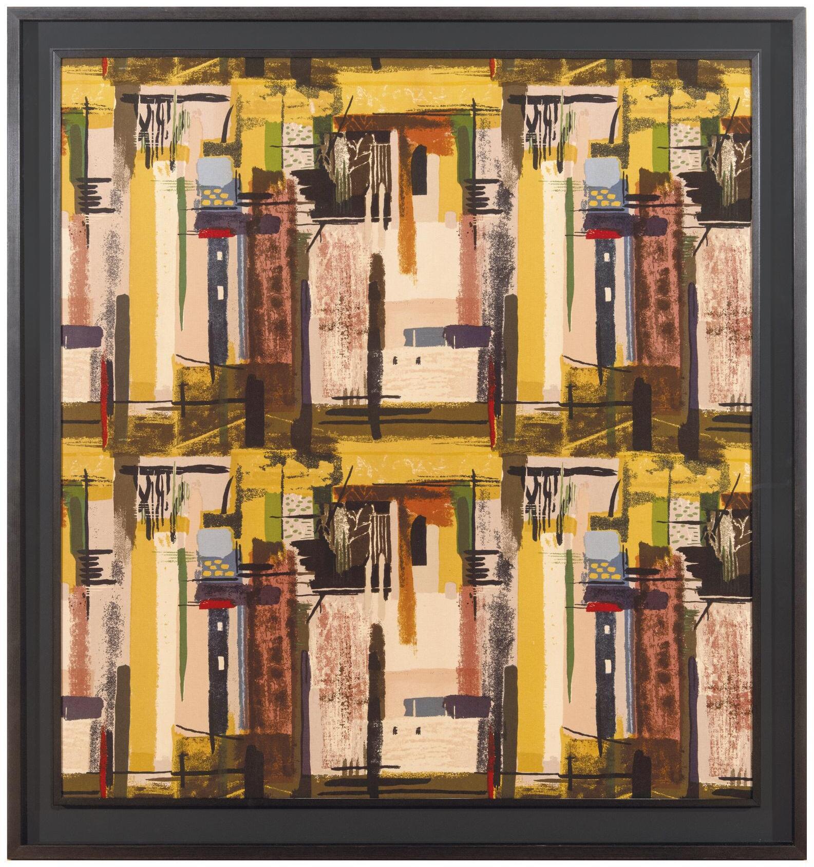 Hamilton Fraser ’ s painting was deeply textural in a similar manner to his compatriots at St Martin’s which included both Frank Auerbach and Leon Kossoff His work is often also compared with Nicholas de Staël in his use of colour and palette knife Leading art critics considered him one of the best well-regarded young modernist painters of the post-war generation and he was invited by de Staël’s New York dealer, Paul Rosenberg, to exhibit in Manhattan between 1958 - 1978. ‘Cyclades’ was based on a painting originally painted in the early 1950s and exhibited at the historic ‘Painting into Textiles’ exhibition held at the Institute of Contemporary Art, London in 1953 - the same year as his first solo exhibition at Gimpel Fils Gallery In 1957, Carel Weight invited him to teach at the Royal College of Art where he would remain for the following twenty five years