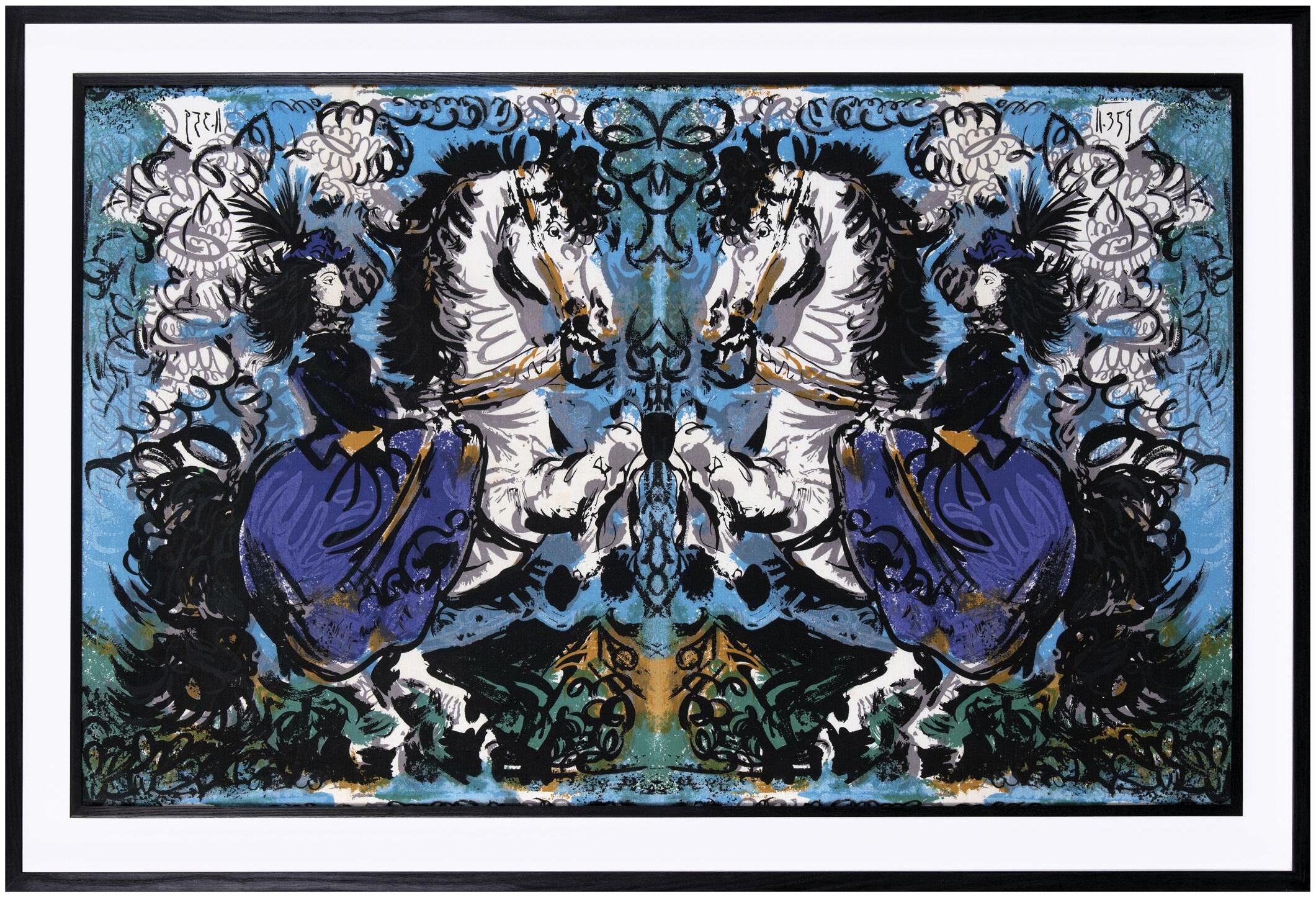 Originally published in 1962 in the book Toros y Toteros, the image of ‘ Toros y Toteros’ was also used on the cover of a book with the same name published in New York in the 1960s with a text by the Spanish bull fighter Luis Miguel Dominguín which included many of Picasso’s bullfighting images Dominguín was a popular figure in artists circles and featured alongside Picasso in Jean Cocteau s 1960 film ‘ Testament of Orpheus’. Picasso, who had been brought up in Málaga and taken to bullfights as a child believed bullfighting to be a true expression of his birth country The Gagosian Galley in 2017 included Picasso’s earliest surviving painting, a small portrait of a picador on a horse made when he was just eight years old