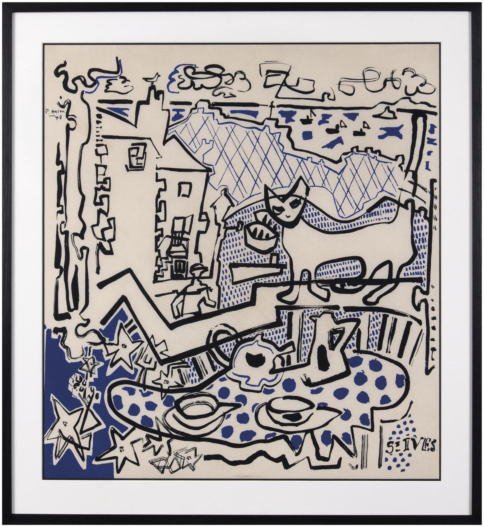 Fuller Fabrics launched their ‘Modern Masters Print collection in 1955 A two-year collaboration with artists including Léger, Picasso Miro Chagall and the Dufy estate led to the selection of key motifs from existing paintings The result was sixty modern artists textile designs that were used for both fashion and interiors all produced under the watchful eye of the artists A film was made by Fuller Fabrics to document the process of this new and creative approach to textiles and taking a page from the Asher Squares in London, the textiles were taken on tour across the United States after previewing at the Brooklyn Museum They featured in the November 1955 Life magazine under the title New Fabrics Put Modern Art in Fashion ’ The magazine photographed international models of the day including American Ivy Nicholson and British model Anne Gunning in Claire McCardell resort wear in the artists studios Other top American designers such as Adele Simpson Mollie Parnisand and Tina Leser ensured that these fabrics were seen being worn in American society The fabrics were additionally marketed to the teenage market A second edition was launched in 1956 by the Decorama division of Fuller Fabrics Braque and Klee also joined the stable of Fuller Fabrics modern artists A selection of the Picasso and Chagall textiles were included in the Museum of Modern Art’s Textiles USA exhibition in 1956