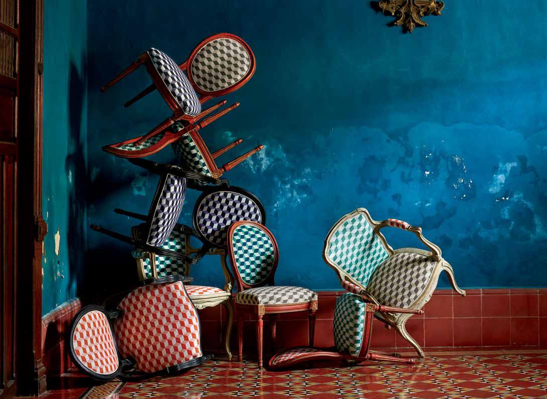 history. Both of those shoots focused on solids and tonal patterns. With the Merida shoot, we wanted to showcase Sunbrella’s range of vibrant patterns and bold colors with a focus on the indoor setting.”