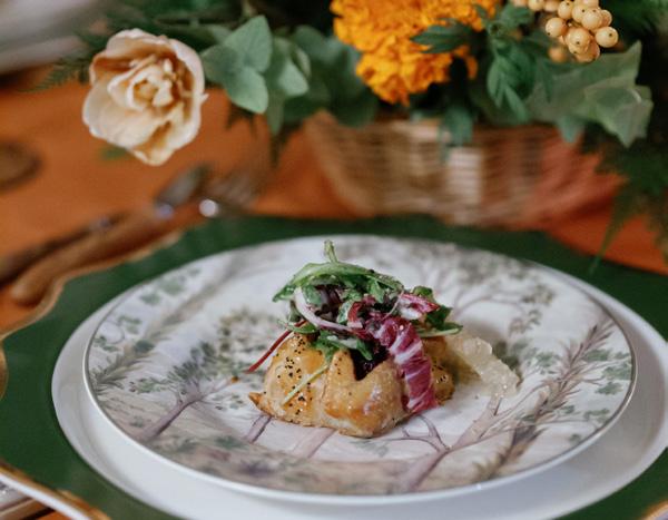 Sparkling Toast | Gourmet Cheese & Charcuterie Board | Two Course Plated Dinner choice of linens and china