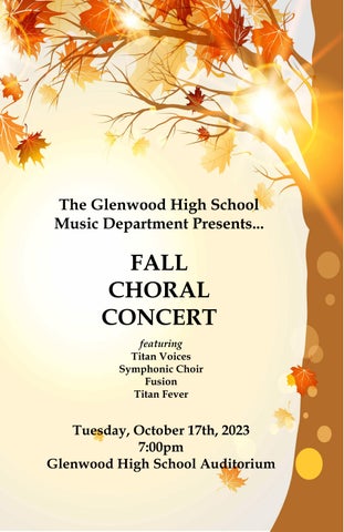 Tuesday, October 17th, 2023 7:00pm Glenwood High School Auditorium