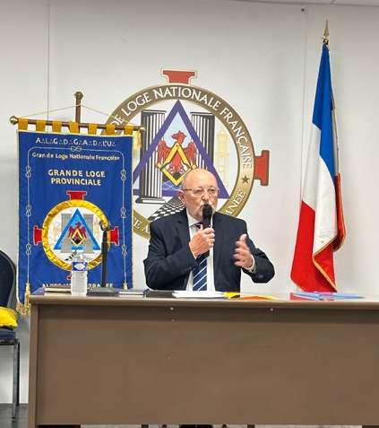 28 mai :Conférence organisée par la RL Europa Provence Méditerranée Une délégation emmenée par le RF Pascal DIOLEZ, Assistant Grand Maître Provincial, accompagné du TVF Éric GEORGE, Grand Expert Provincial en charge du Rite Français de Tradition, et de plusieurs Frères de notre Province, a assis-té à la conférence du VF Luc PETIT organisée par la RL Europa Provence Méditerranée (GLNF). Celui-ci y retraça l’histoire et la transmission du Rite Français de Tradition, dit aussi Franco-Belge, depuis son introduction en France dans les années 1980 par le Pasteur belge Omer Faidherbe, et dont la pratique fut admise au sein de la GLNF sous la Grande Maîtrise du TRF Jean Mons, ancien Grand Maître de la GLNF, mettant en lumière les influences croisées de l’Angleterre, de la France et de la Belgique.