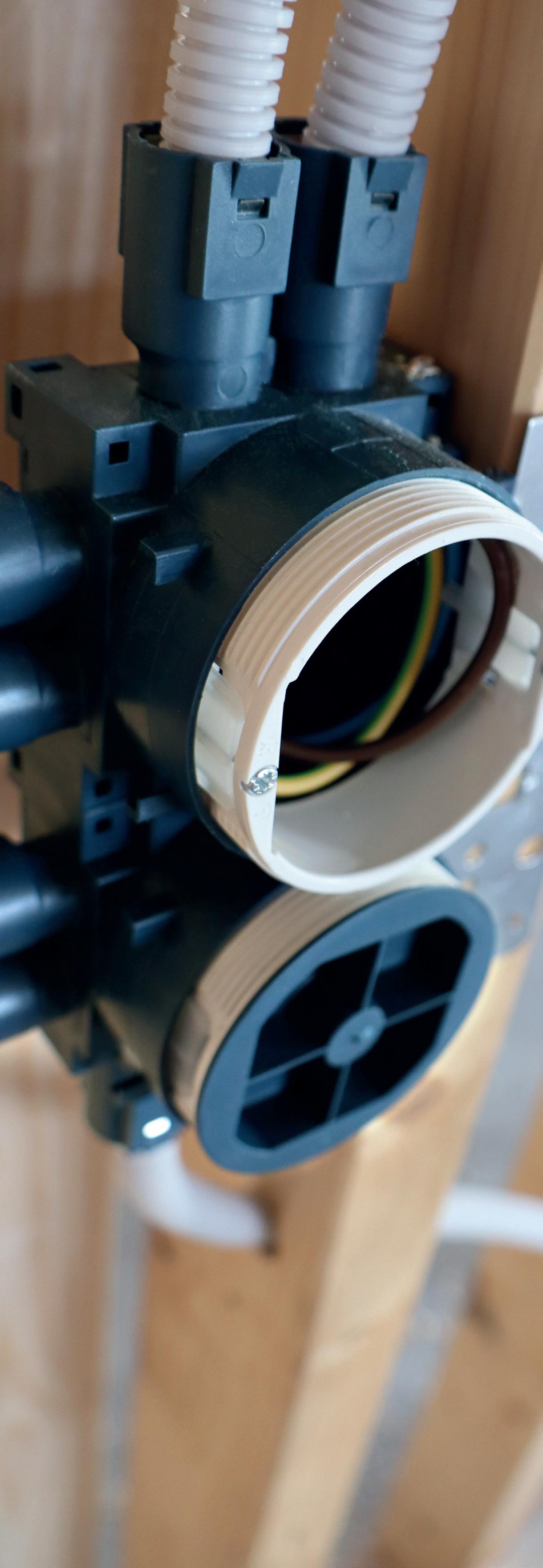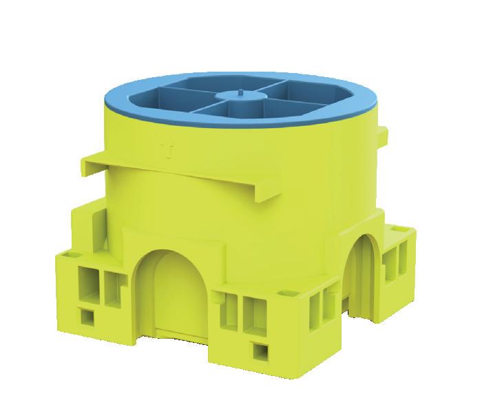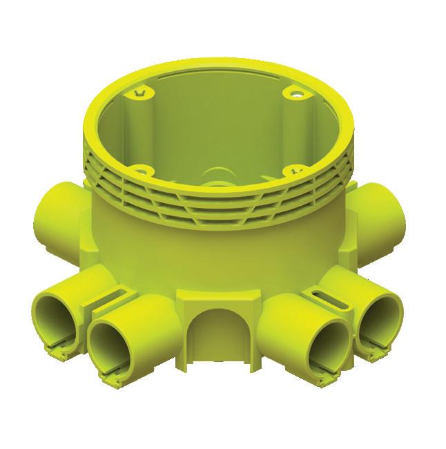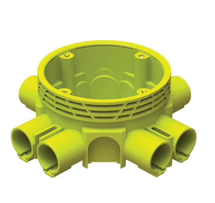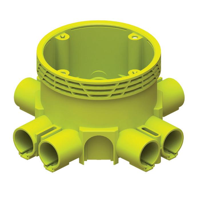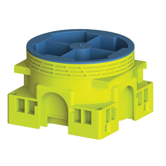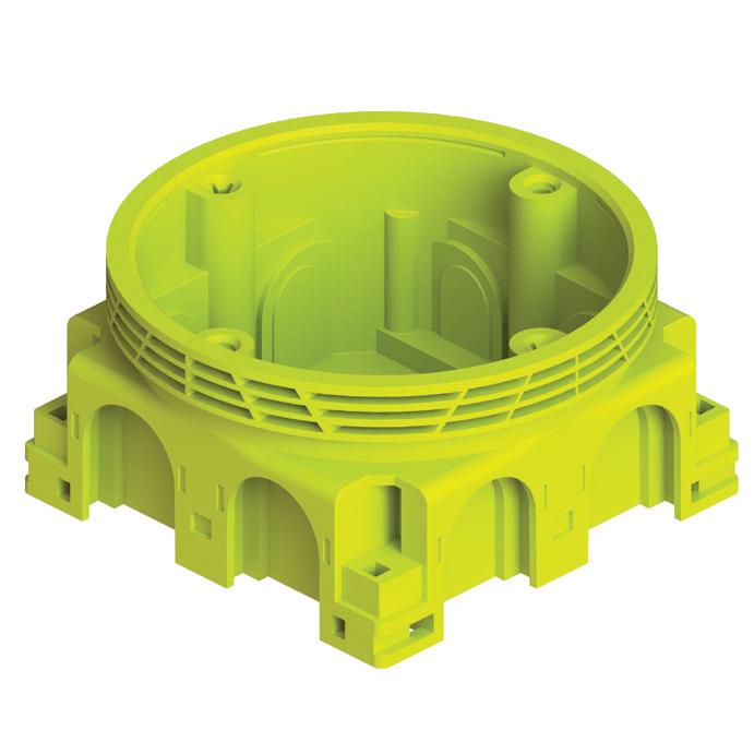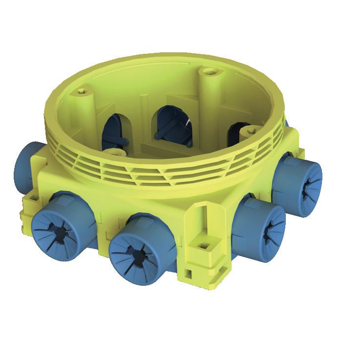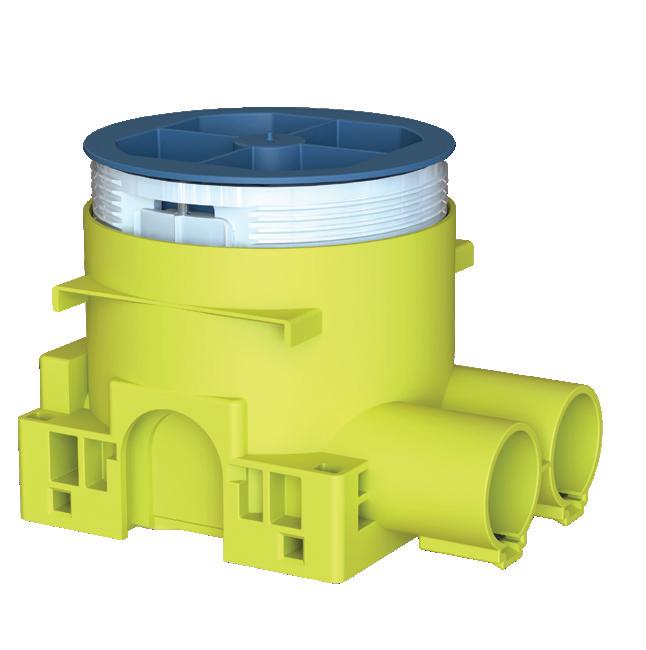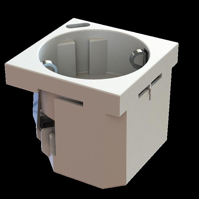 safeguards wiring during construction. This lid also functions as a turning tool for adjusting the inner ring in single-wall boxes, ensuring precise height customisation. After installation, the lid can be recycled, promoting environmental sustainability. This dual-purpose design enhances the wall boxes’ functionality and eco-friendliness, making them an ideal choice for conscientious installers.
