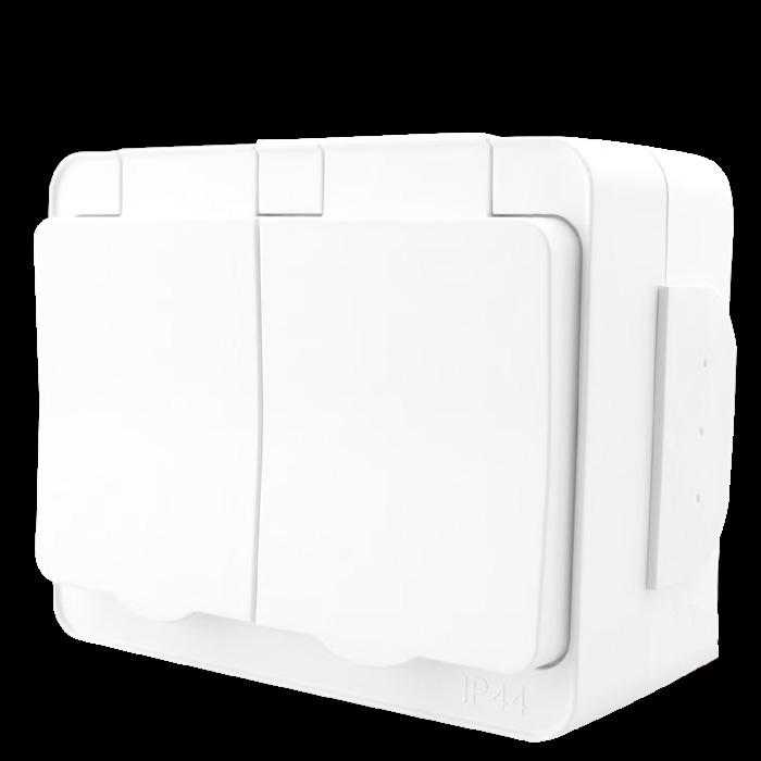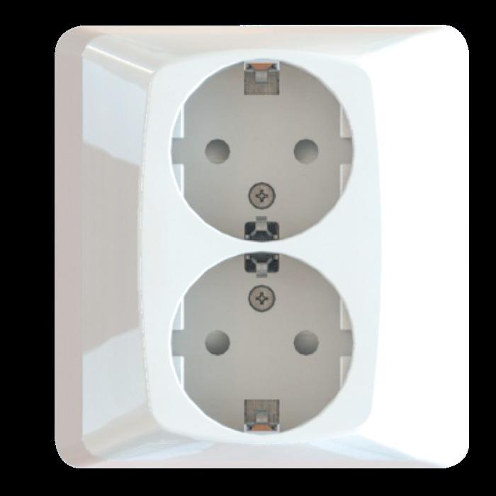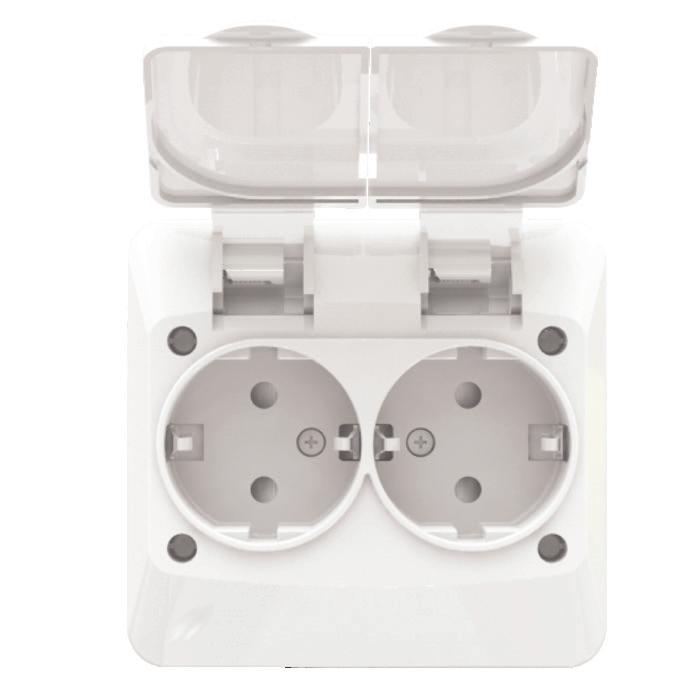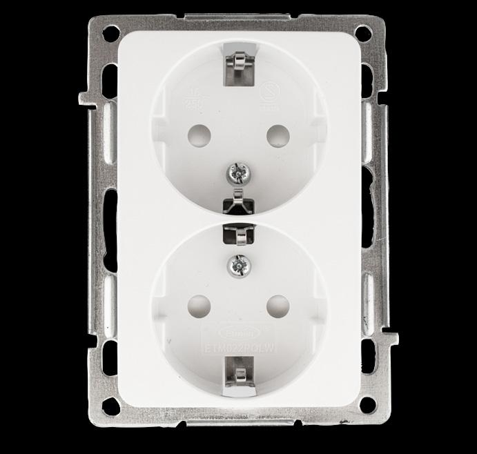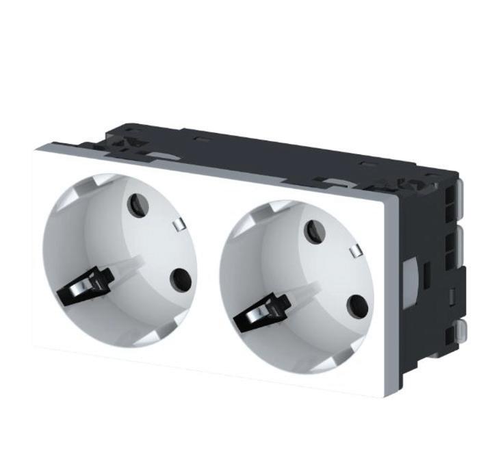 Socket frame designed to fit two 3-way Schuko sockets. Provides a secure and precise fit, ensuring stability and protection. Made from durable materials for long-lasting use, offering a clean and professional finish for multi-socket installations.