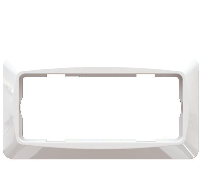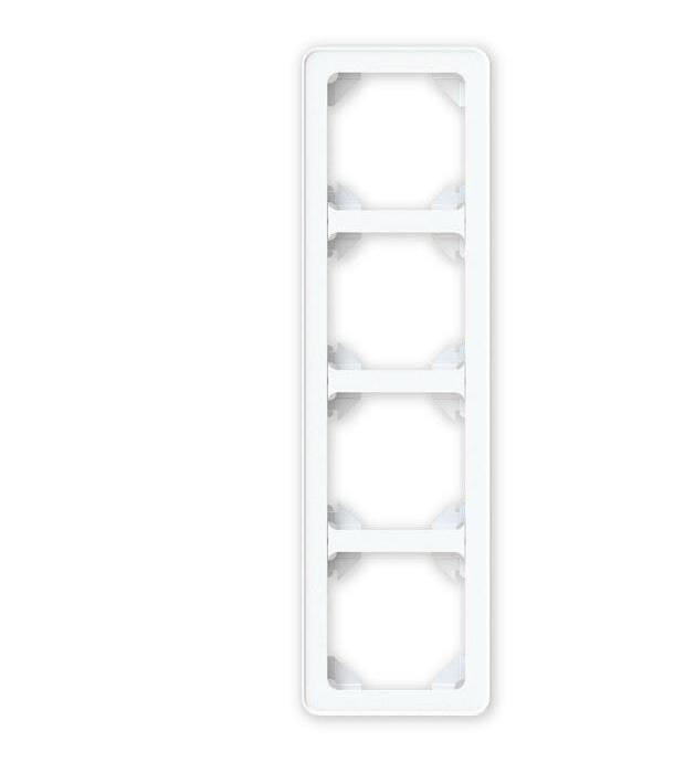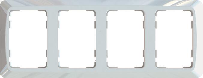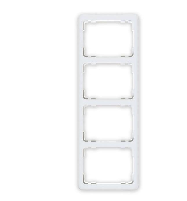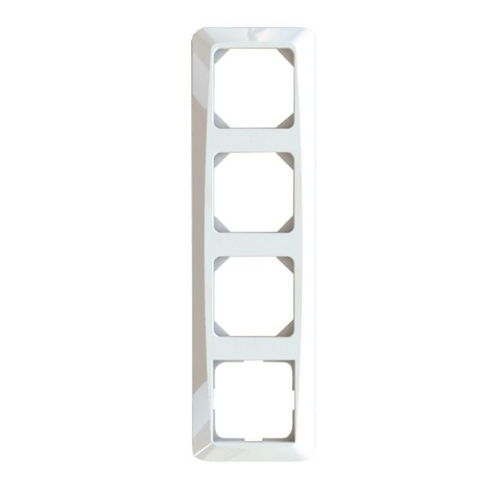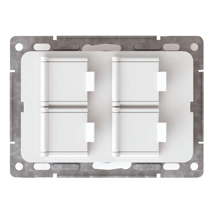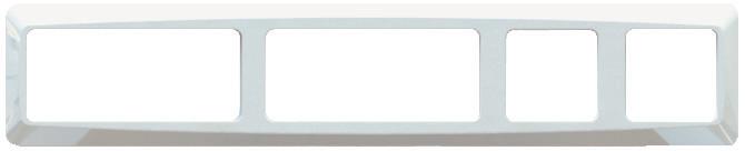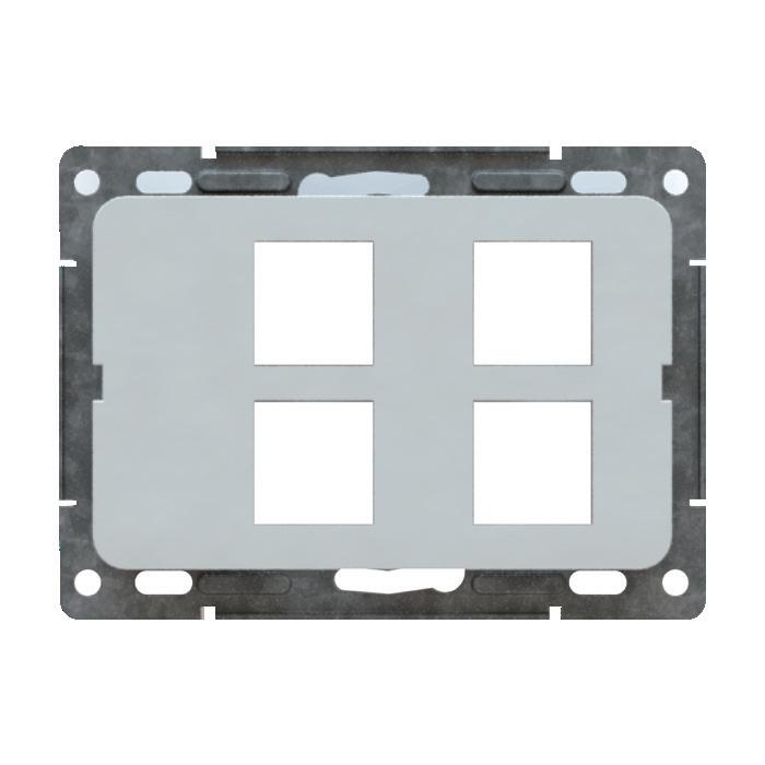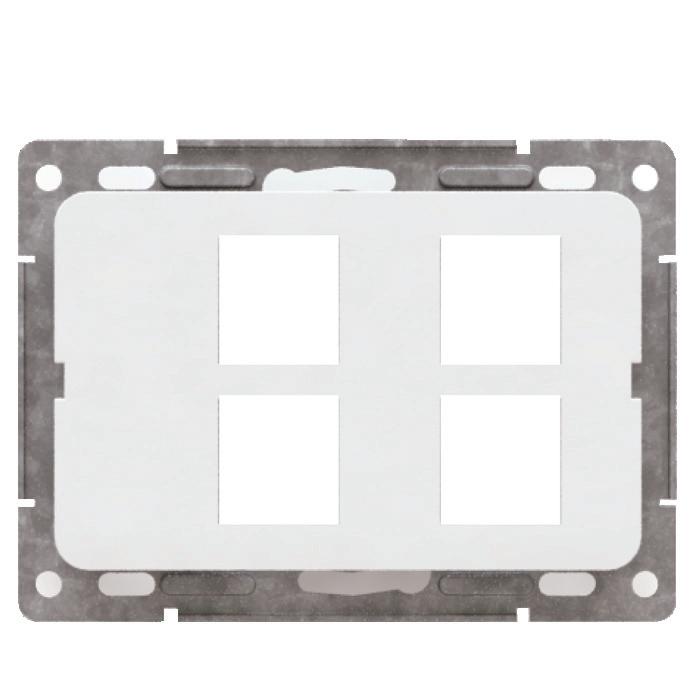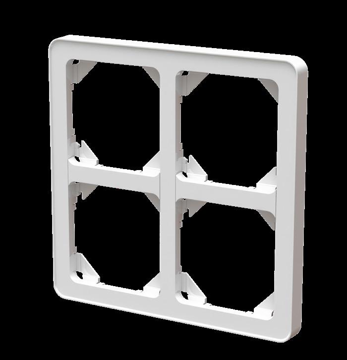 4-way combination frame fitting two standard-sized sockets/ switches and two RS16-sized. Designed for recessed installation or use with wall casings of matching size.