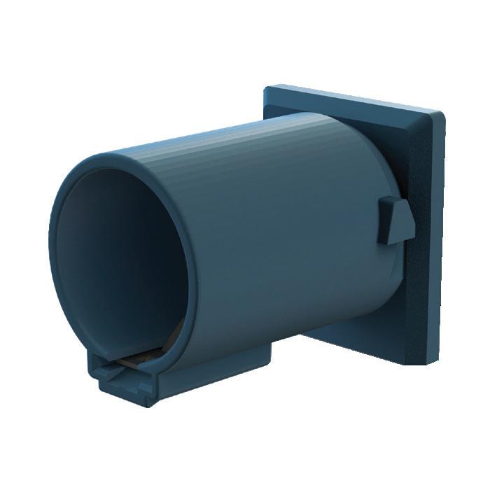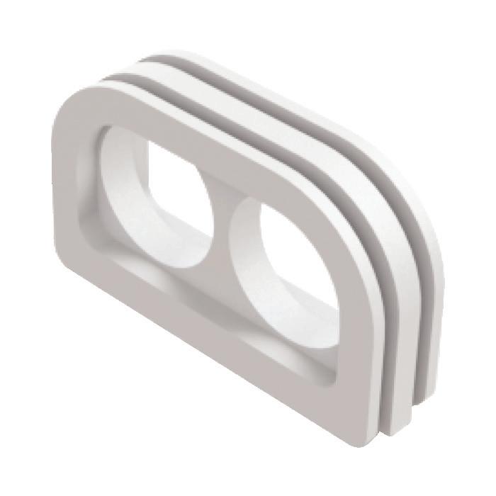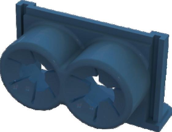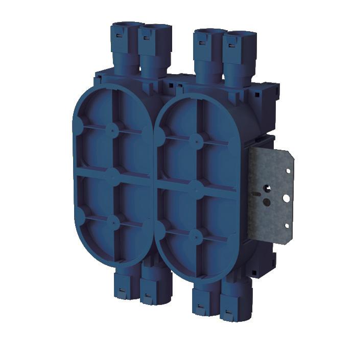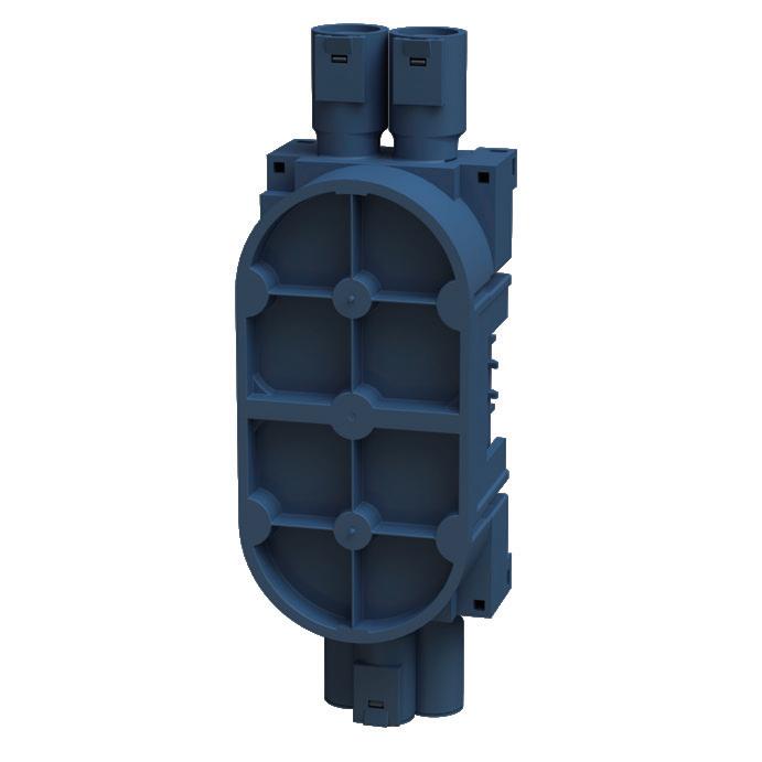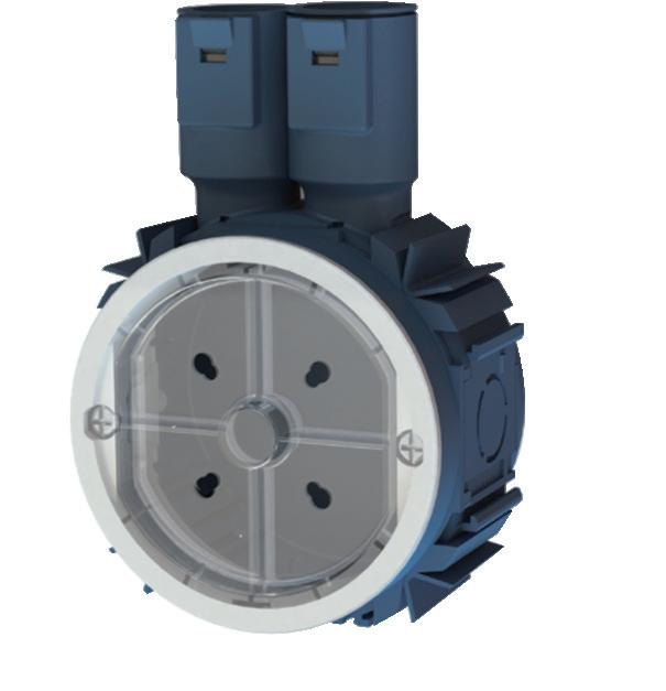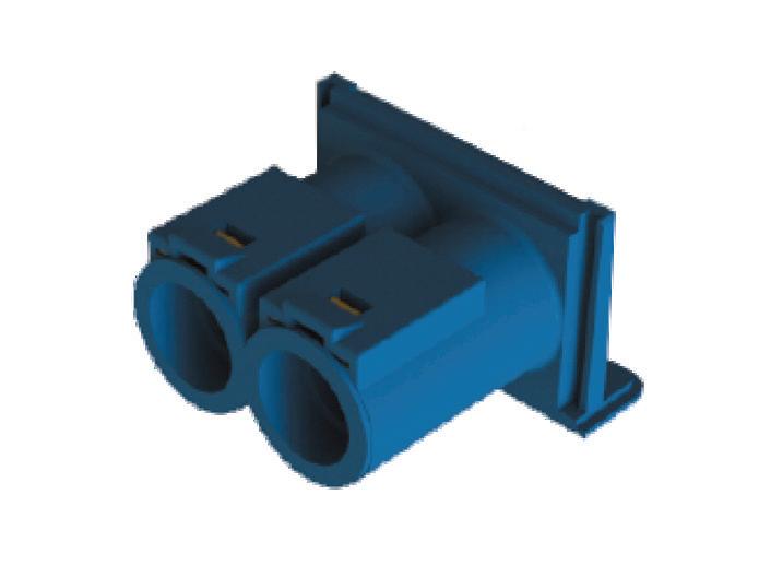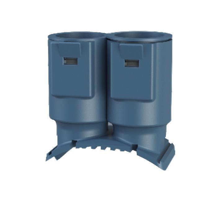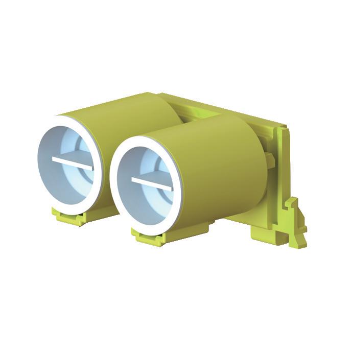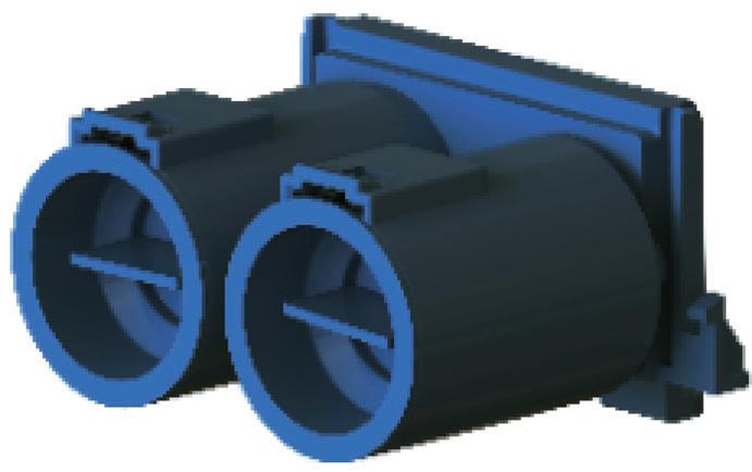 Inlet attachment for two Ø16 conduits. It features locking springs and sealing caps.